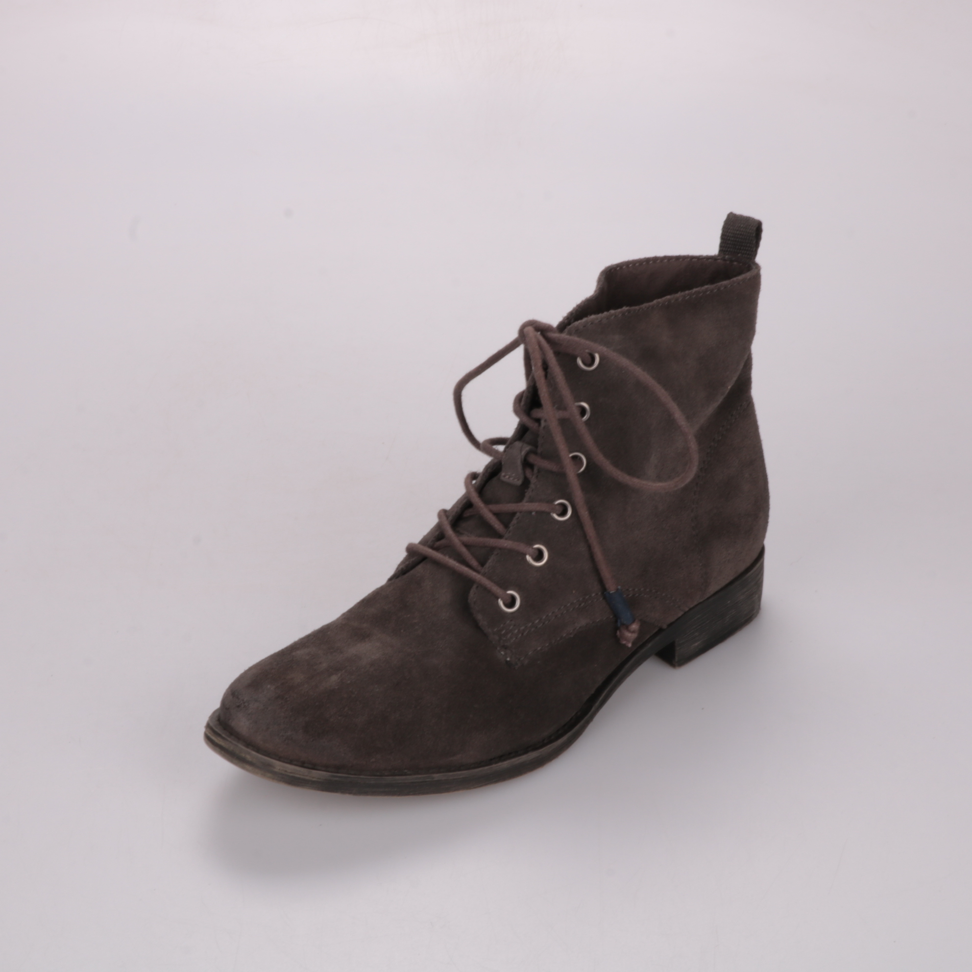 Ботинки Tamaris из коричневой замши на шнуровке и невысоком каблуке. Подойдут на каждый день в межсезонье и для городских прогулок. Устойчивая подошва с выраженным протектором практична в носке и меньше скользит.