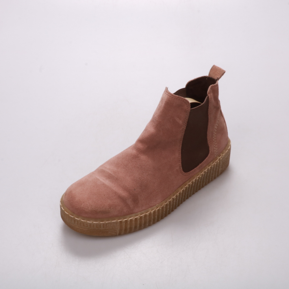 Женские замшевые ботинки Gabor в пудрово-розовом цвете с эластичными вставками по бокам. Подойдут для повседневных образов в демисезон — с джинсами, брюками или платьями. Рифлёная резиновая подошва даёт хорошее сцепление и устойчивость при ходьбе.