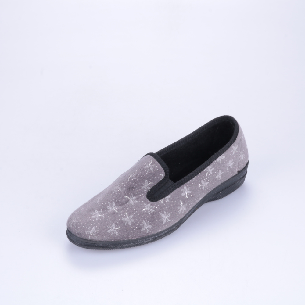 Домашние тапочки Palrizia в сером цвете с мелким принтом, удобная модель без шнуровки. Подойдут для дома и дачи, мягкая внутренняя отделка делает посадку комфортной. Практичная резиновая подошва не скользит и легко очищается.