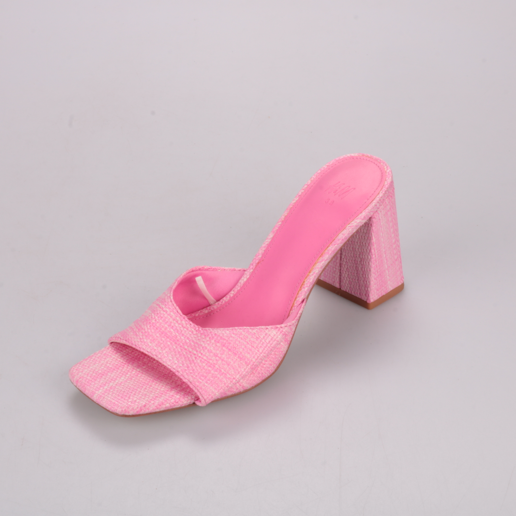 Женские мюли H&M розового цвета с открытым носком и устойчивым каблуком. Подойдут для лета и тёплой погоды — к платьям, юбкам и лёгким брюкам. Удобно надевать и снимать благодаря модели без застёжек.