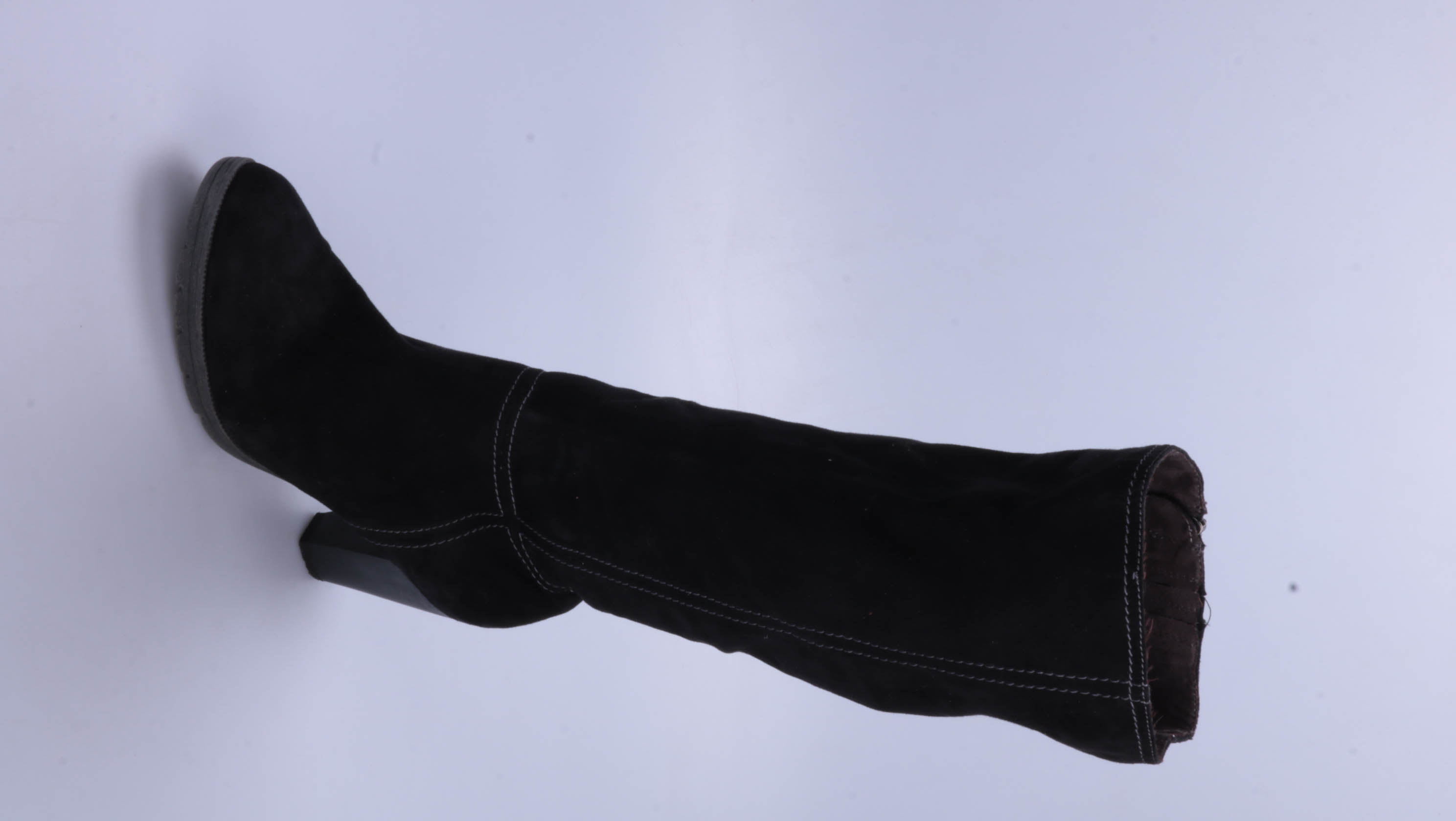 Женские сапоги Tamaris из чёрной замши с боковой молнией и контрастной строчкой. Подойдут на каждый день в прохладную погоду, хорошо смотрятся с платьем или узкими джинсами. Устойчивый каблук и рельефная подошва делают ходьбу более комфортной и уверенной.