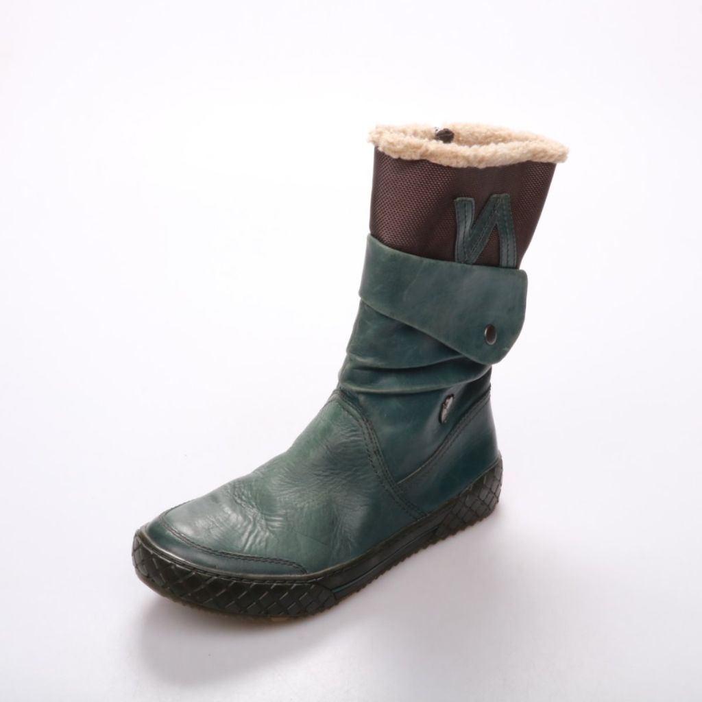 Женские сапоги VADO в зелёной коже с текстильным голенищем и тёплой подкладкой по верху. Подойдут для повседневной носки в холодную погоду, удобная застёжка-молния облегчает надевание. Практичная рифлёная подошва даёт устойчивость на улице.