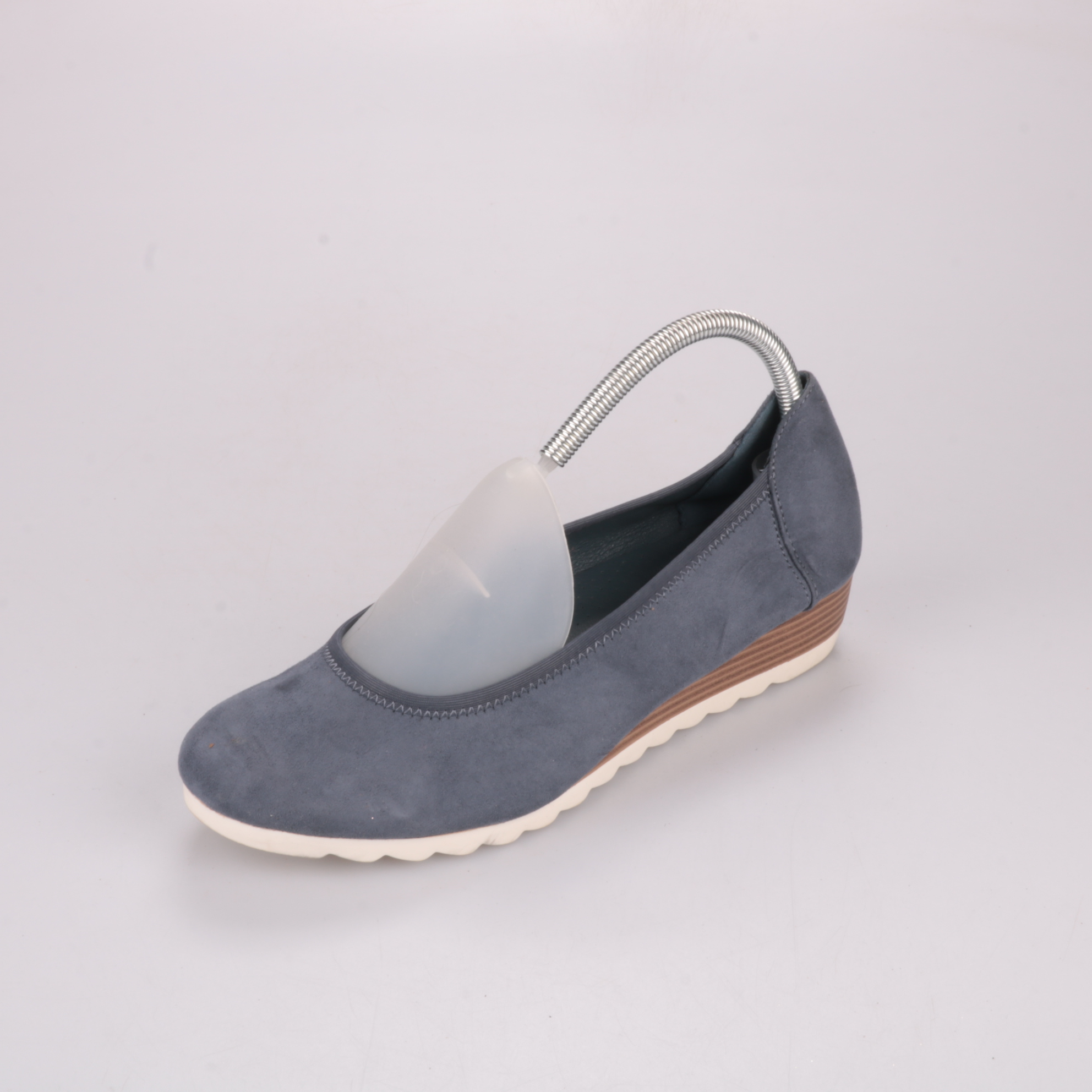 Женские туфли Graceland из искусственной замши в серо-синем цвете на невысокой танкетке. Удобны на каждый день и для офиса, хорошо смотрятся с джинсами и платьями. Рифлёная подошва даёт более уверенное сцепление и комфорт при ходьбе.