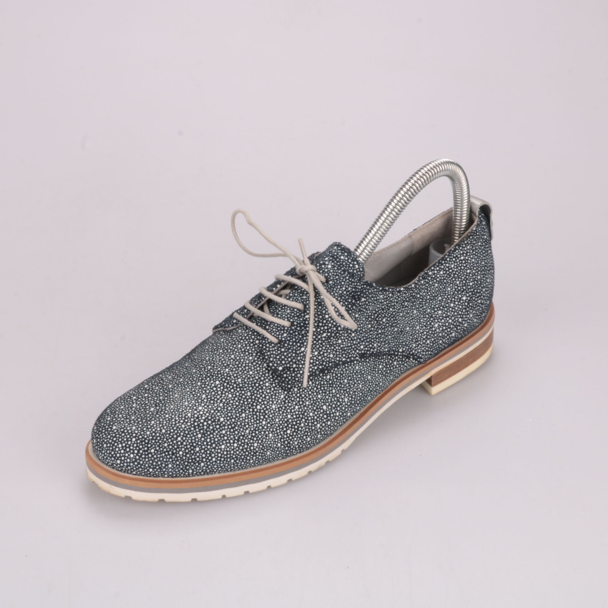Женские туфли LAV.ARTIGIANA из кожи с фактурой под ската, на шнуровке и с контрастной многослойной подошвой. Подойдут для повседневных образов и офиса в демисезон. Рифлёная подошва даёт более уверенное сцепление на улице.