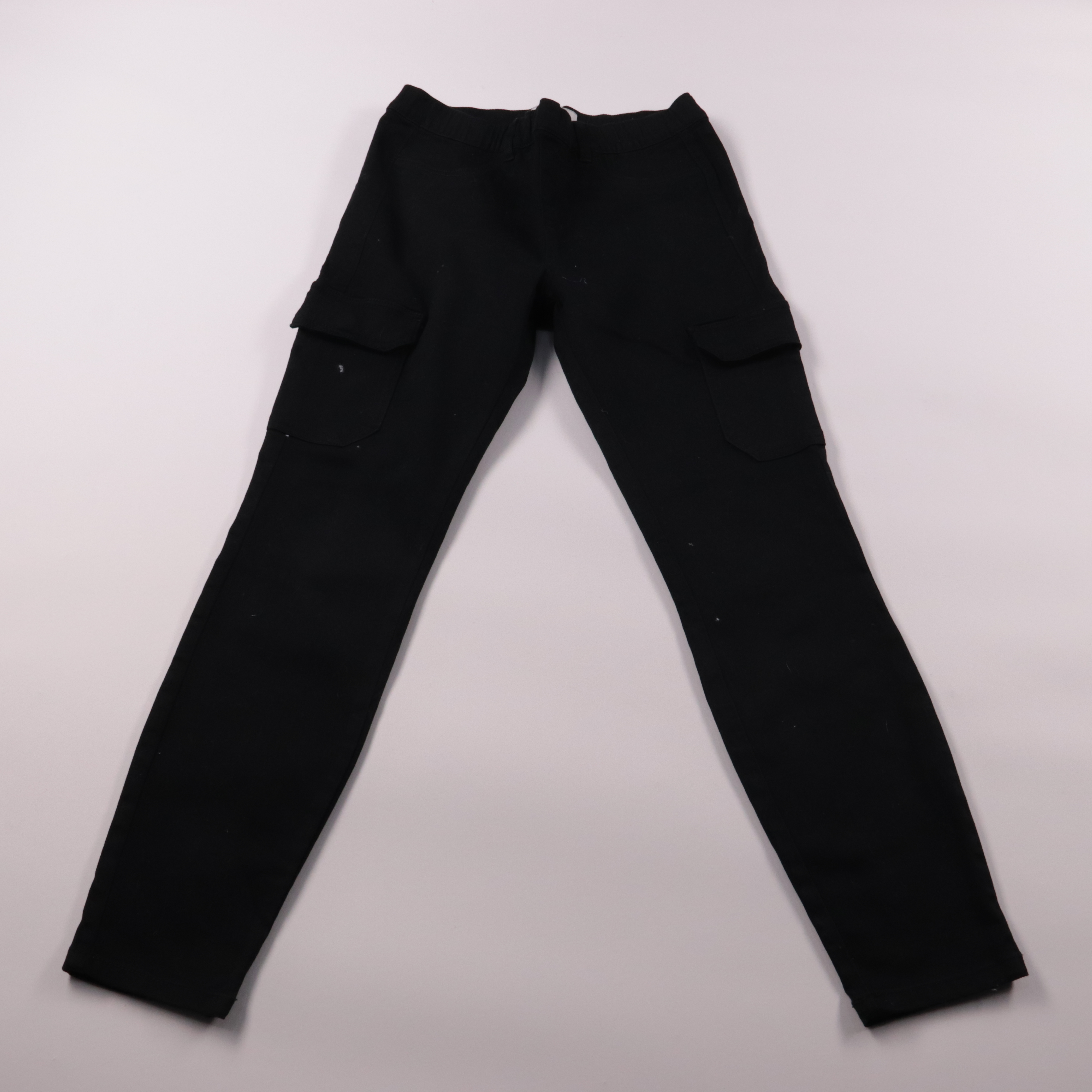 Женские чёрные брюки Essentials by Tchibo с накладными карманами в стиле cargo. Подойдут для повседневных образов и прогулок, ткань слегка тянется и удобна в движении. Практичный вариант: много карманов и немаркий цвет.