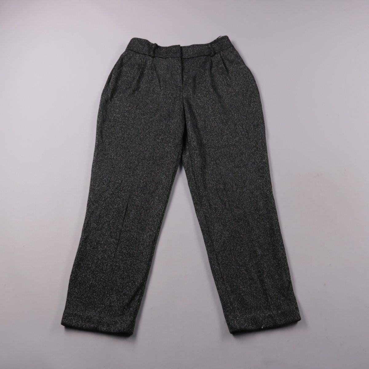 Женские брюки Primark прямого кроя из тёмно-серой ткани с лёгким блеском (металлизированная нить). Подойдут для офиса и повседневных образов благодаря спокойному цвету и лаконичному дизайну. Практичны тем, что легко сочетаются с базовыми топами и обувью.