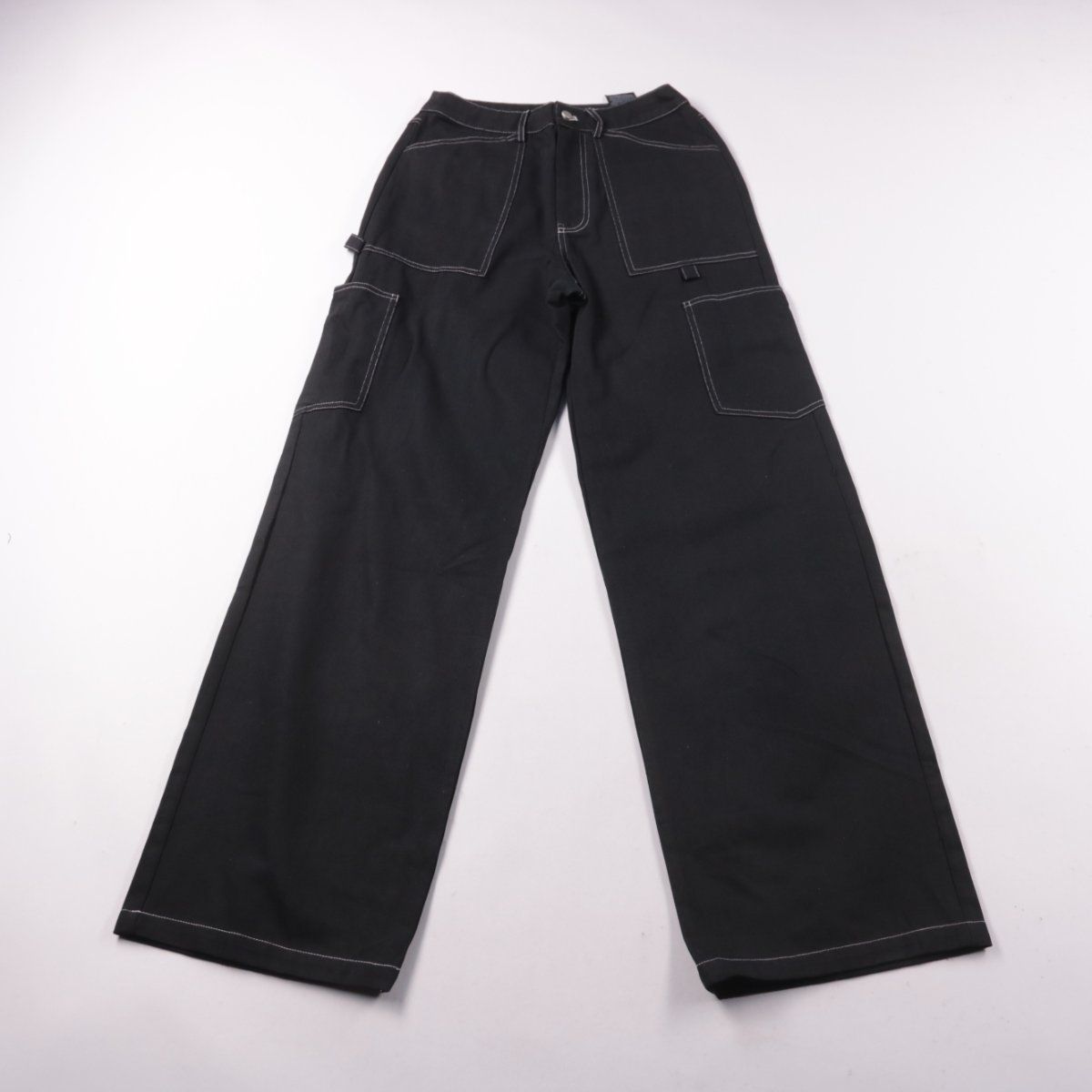 Брюки PIECES из плотного хлопка чёрного цвета с контрастной строчкой и накладными карманами в стиле карго. Подойдут для повседневных образов и стритстайла с кедами или ботинками. Хлопковая ткань хорошо носится и проста в уходе.