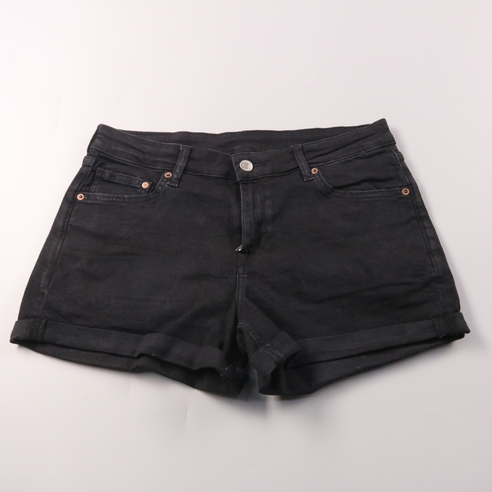 Джинсовые шорты H&M в чёрном цвете, модель Relaxed с отворотами и классической посадкой. Подойдут для летних прогулок и повседневных образов с футболками и рубашками. Плотный деним с эластаном немного тянется и комфортно сидит.
