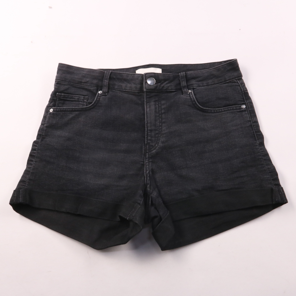 Джинсовые шорты H&M чёрного цвета с подворотами и классическими карманами. Подойдут для повседневных летних образов с футболками и кедами. Плотный деним со стрейчем комфортно садится по фигуре и не сковывает движения.