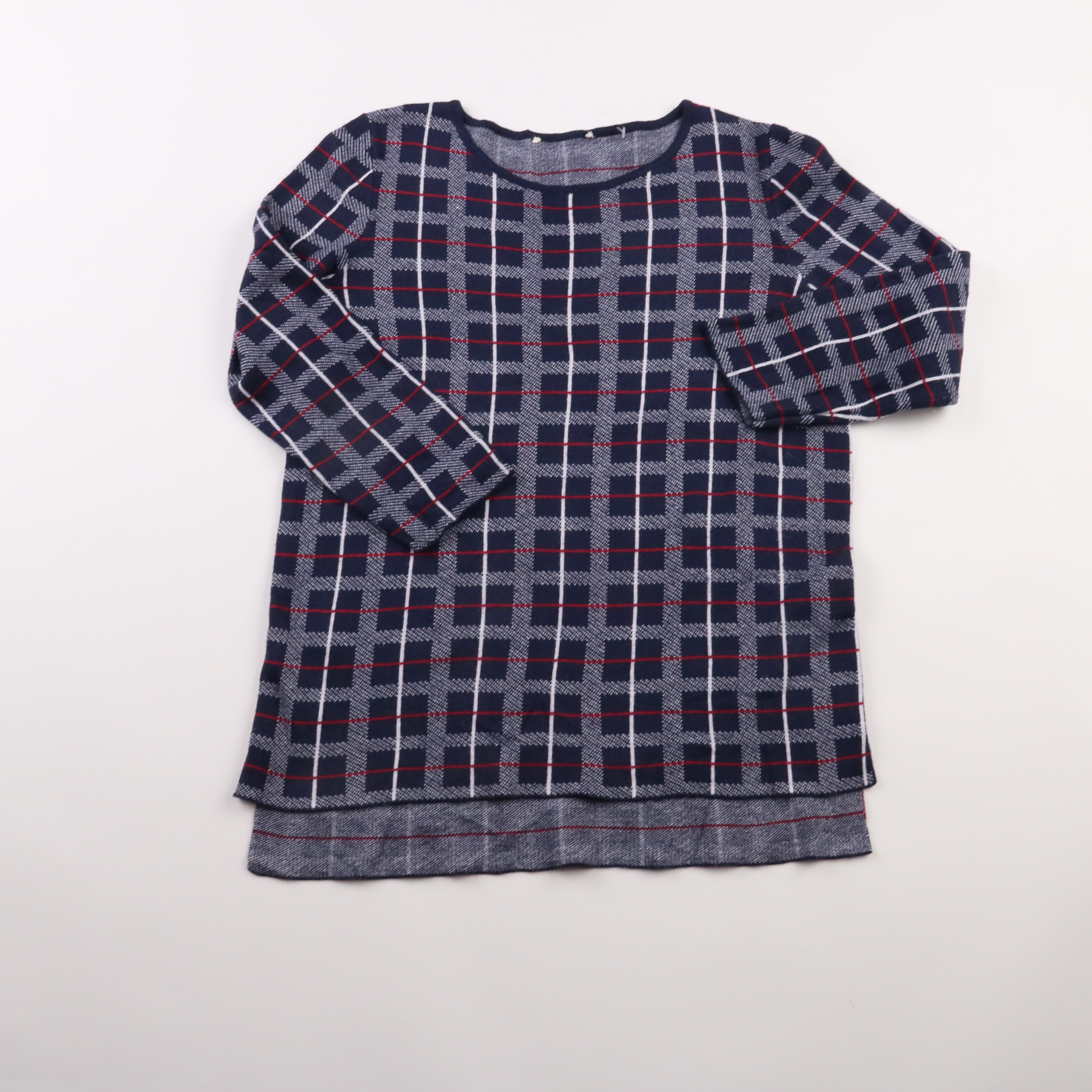 Женский джемпер в клетку в сине-серо-красной гамме, мягкий трикотаж и круглый вырез. Подойдёт для повседневных образов и офиса в прохладную погоду, хорошо сочетается с джинсами и брюками. Практичный материал не требует сложного ухода и комфортно носитс...