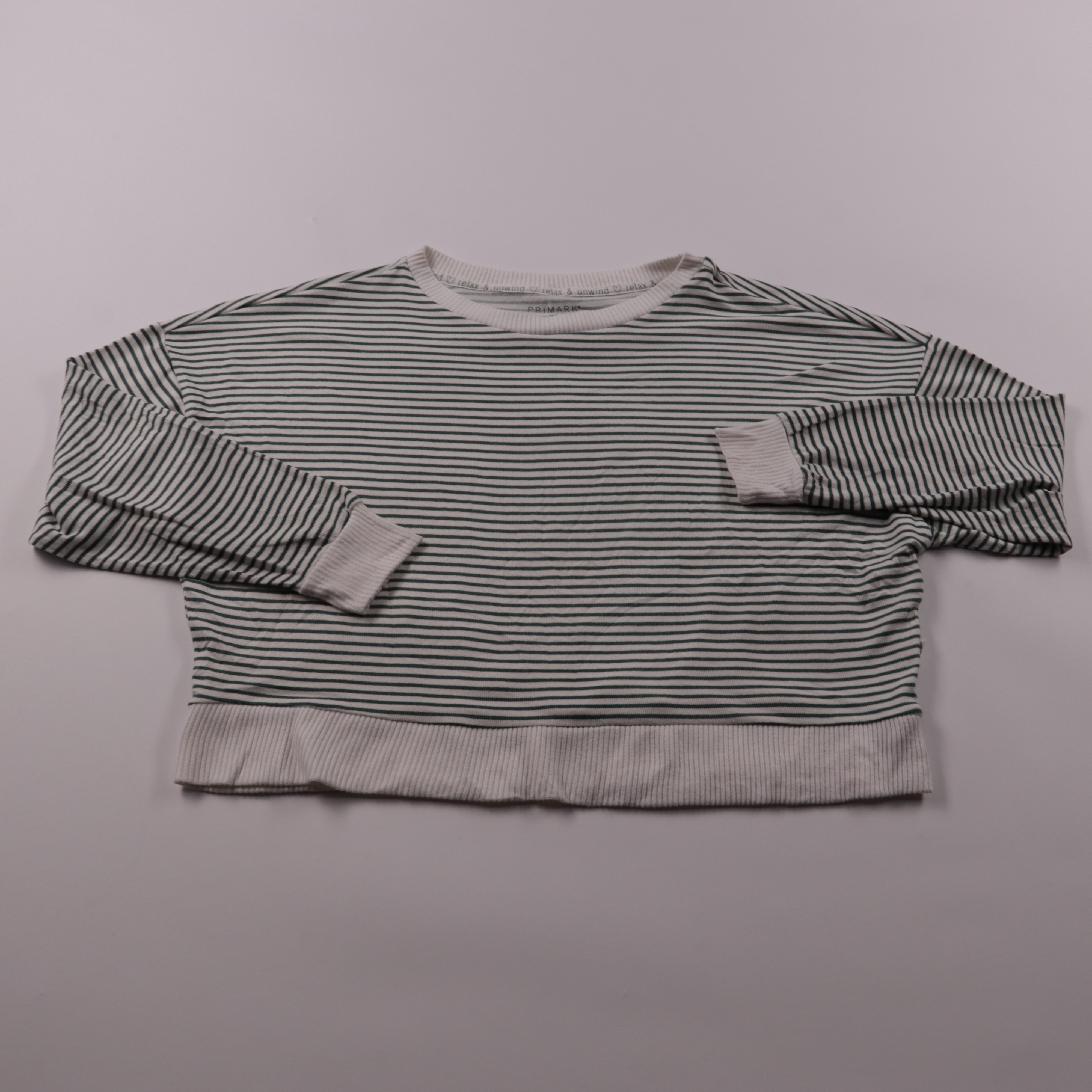 Полосатый женский джемпер Primark с круглым вырезом и манжетами. Подойдёт для повседневных образов в прохладную погоду, хорошо сочетается с джинсами и юбками. Трикотаж мягкий и удобный, не стесняет движений.