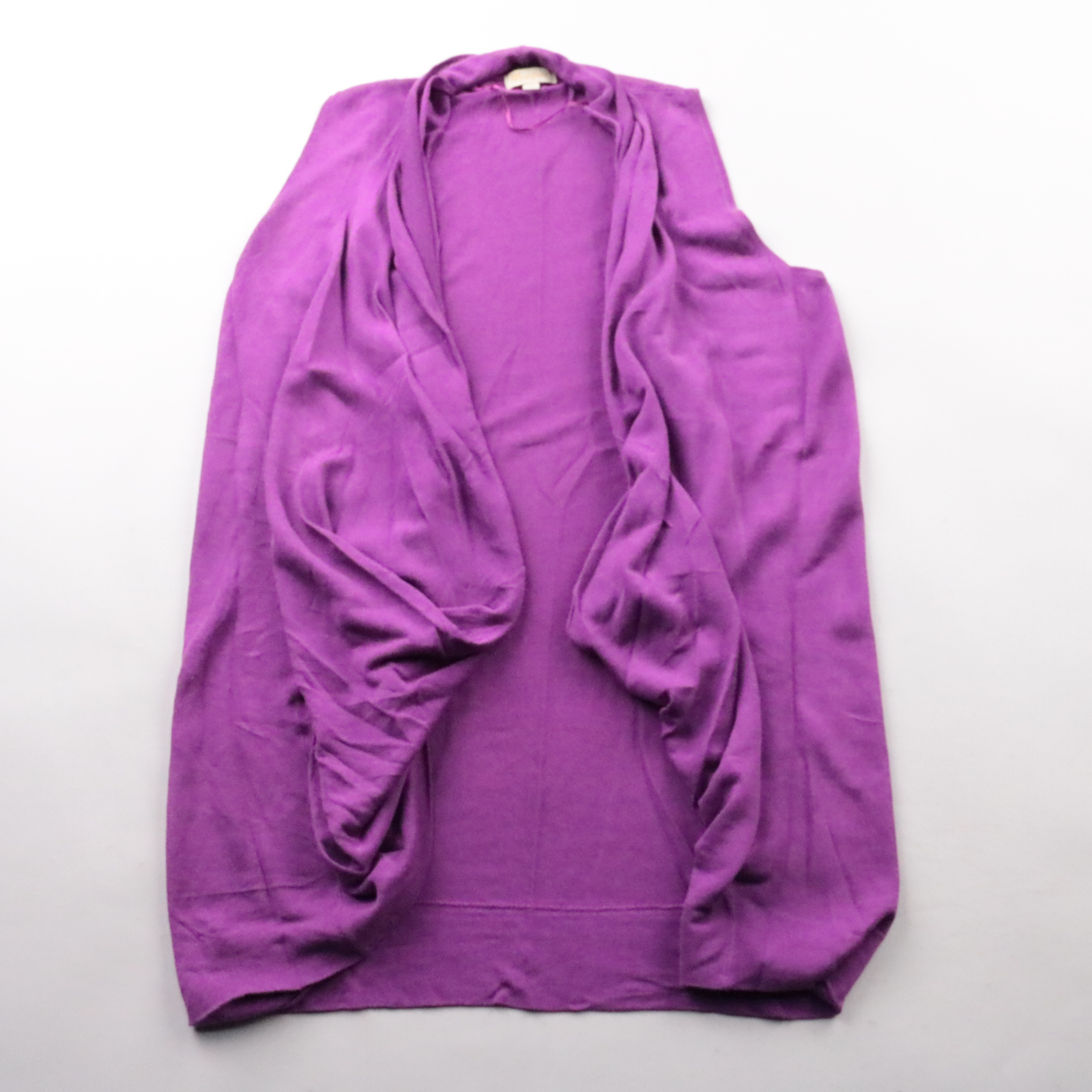 Кардиган Monsoon фиолетового цвета с драпированными полочками без застёжки. Подойдёт для офиса и повседневных образов, удобно накидывать поверх топа или платья. Тонкий трикотаж мягко ложится и не сковывает движения.