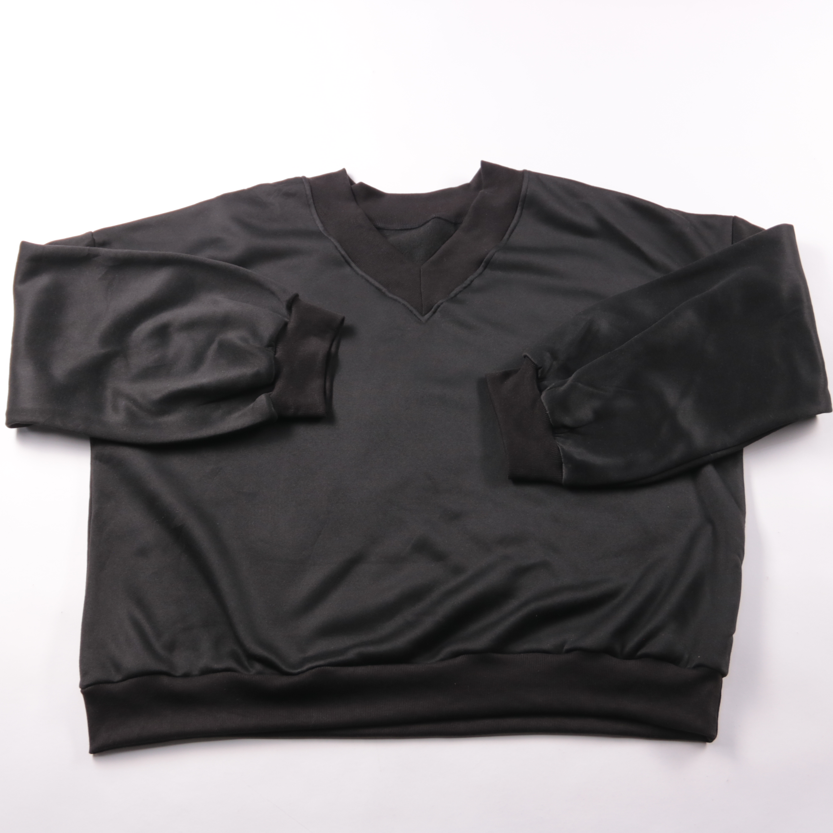Женский джемпер Shein Curve чёрного цвета с V-образным вырезом и манжетами. Подойдёт для повседневных образов и офиса, легко сочетается с джинсами и брюками. Практичный материал из полиэстера быстро сохнет и почти не мнётся.