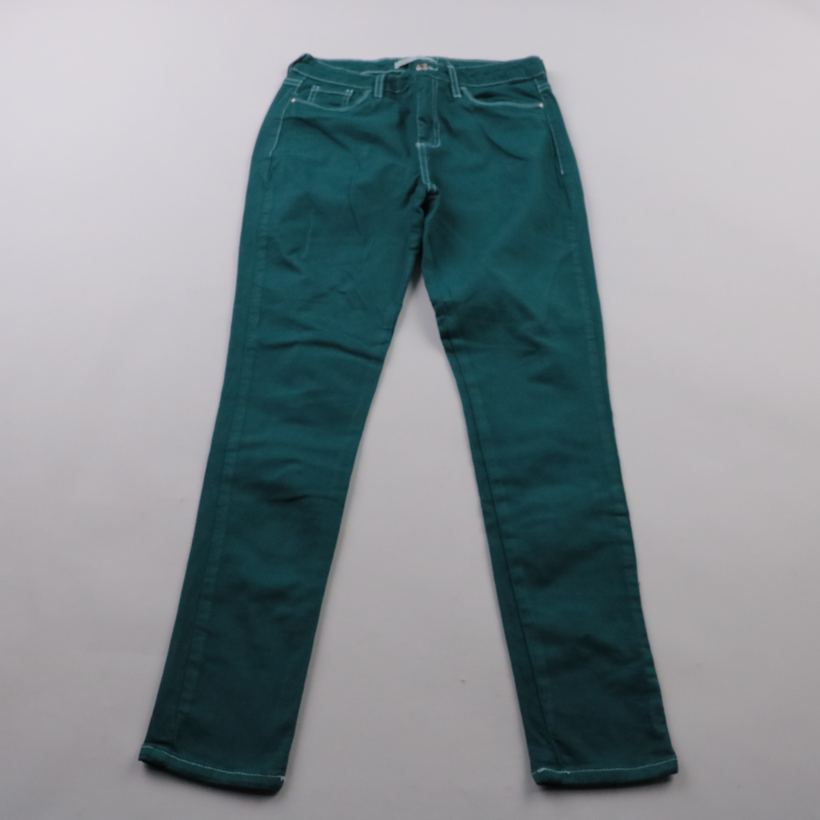 Женские джинсы Pink модели skinny в зелёном цвете с контрастной светлой строчкой. Подойдут для повседневных образов с кедами или ботинками в любой сезон. Плотная ткань хорошо держит форму и не просвечивает.