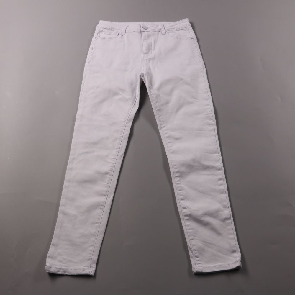 Белые джинсы без указанного бренда, зауженного кроя и со стандартной посадкой. Подойдут на каждый день и для аккуратных светлых образов с кедами или обувью на каблуке. Практичны тем, что легко сочетаются с любой верхней одеждой и базовыми цветами.