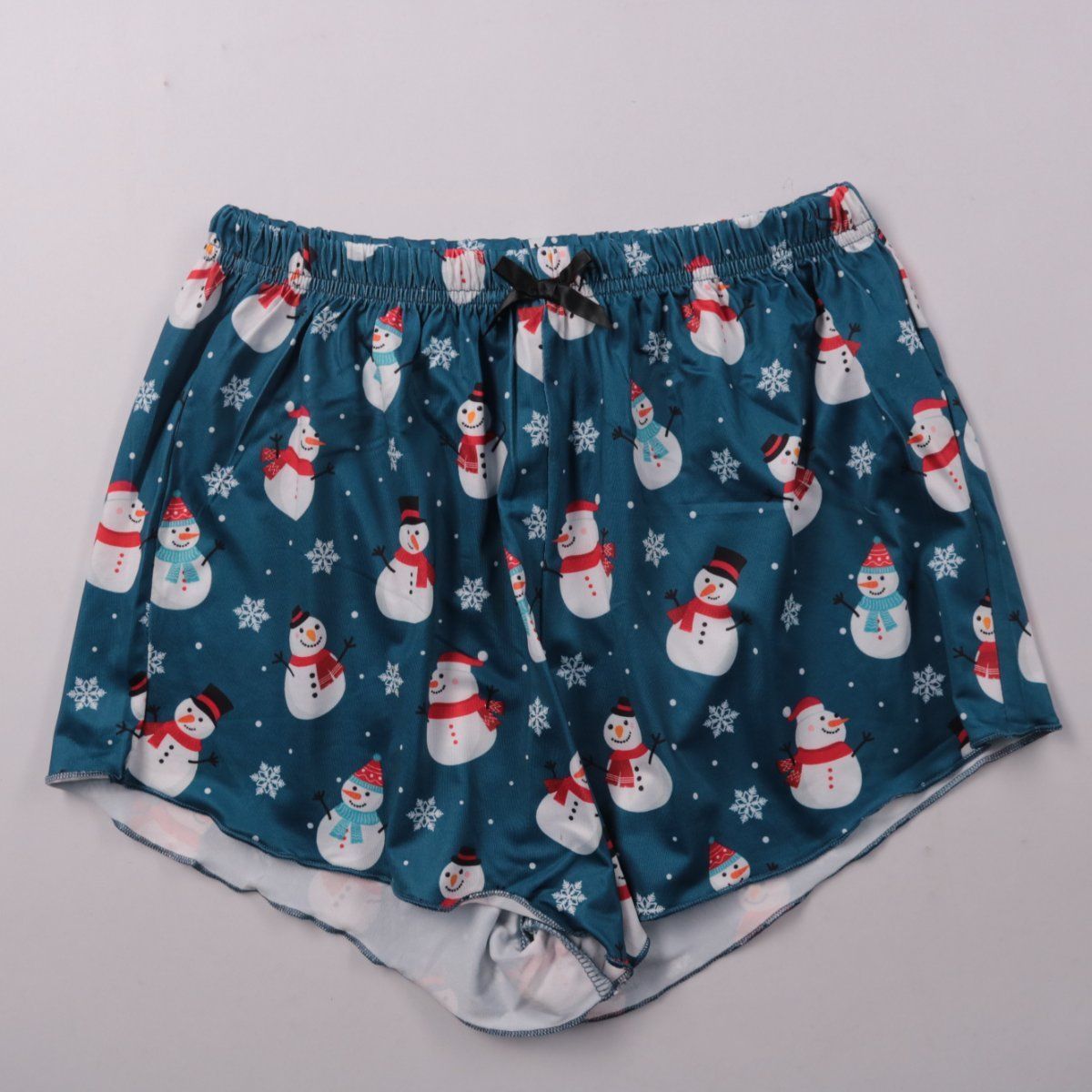 Женские трусы-шорты Shein из полиэстера с новогодним принтом (снеговики) и эластичным поясом. Подойдут для дома и сна, мягко сидят по талии и не стесняют движений. Практичный материал быстро сохнет и прост в уходе.