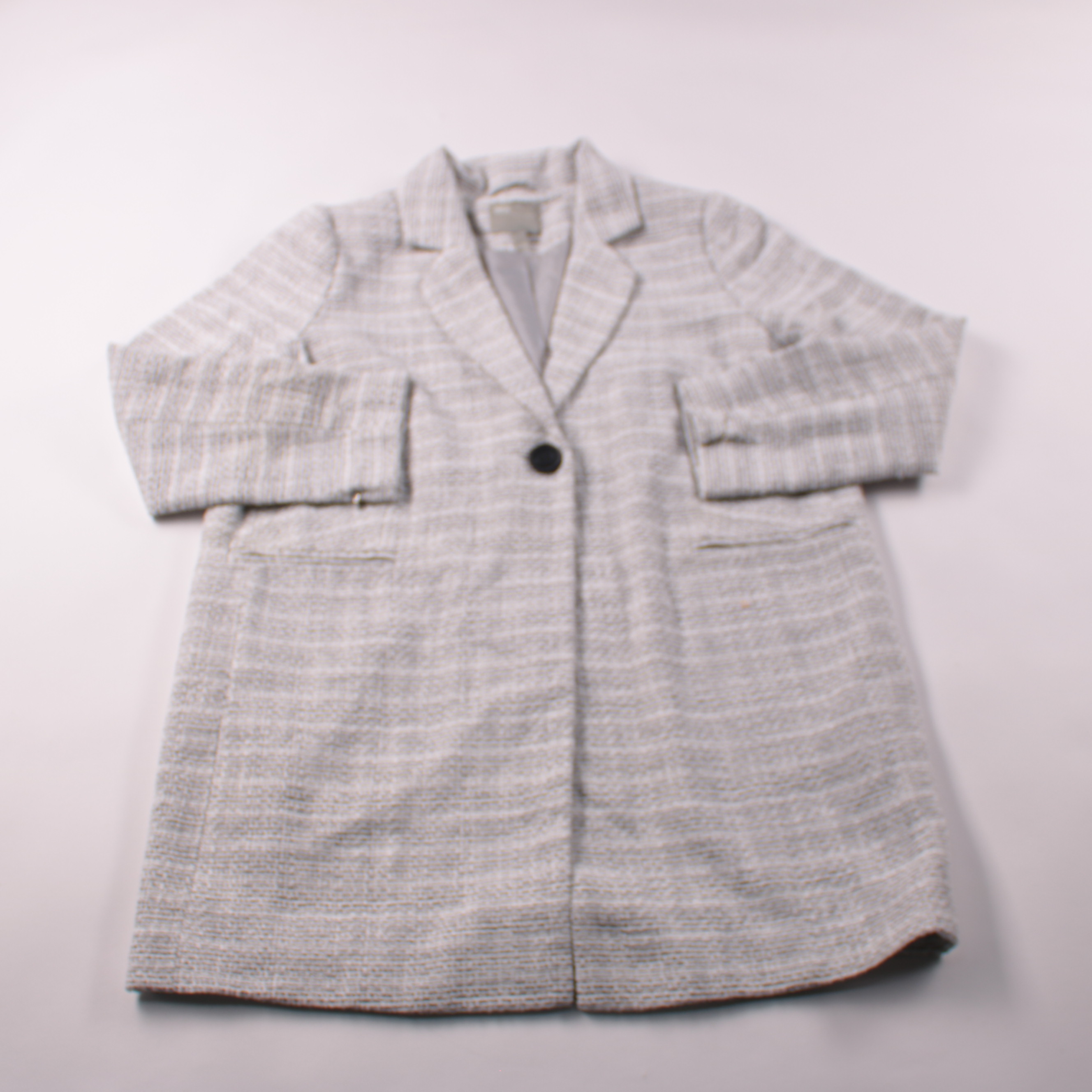 Женский пиджак ASOS из фактурной твидовой ткани в светло-сером оттенке, на одной пуговице и с карманами. Подойдёт для офиса и на каждый день, легко сочетается с джинсами или брюками. Практичная подкладка из полиэстера делает его удобным в носке и уходе.