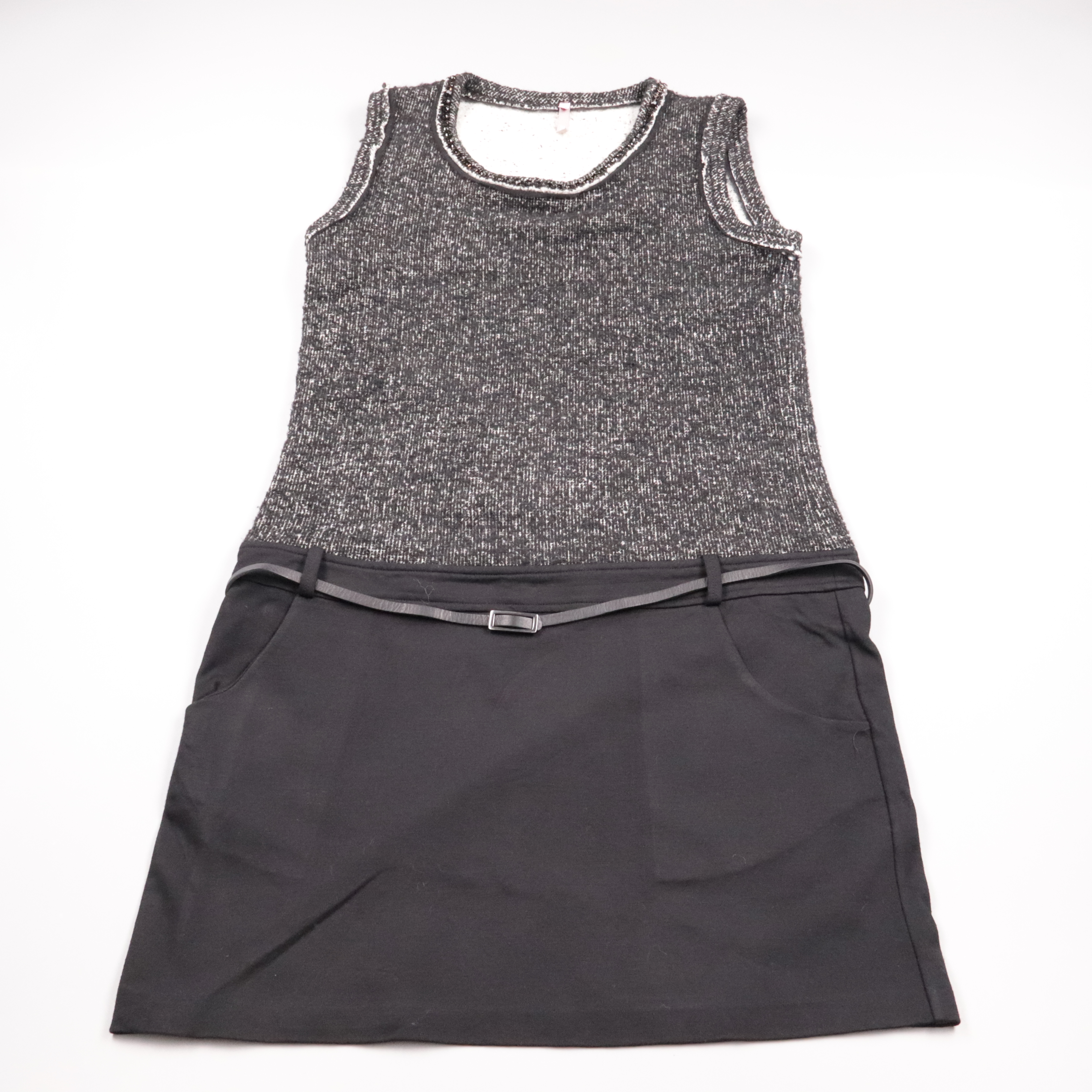 Повседневное платье SCEE без рукавов: верх из меланжевого трикотажа, низ из гладкой ткани, в комплекте тонкий ремешок. Подойдёт для офиса и на каждый день, легко сочетается с жакетом или кардиганом. Практичный плюс — немаркий тёмный цвет и комфортная п...
