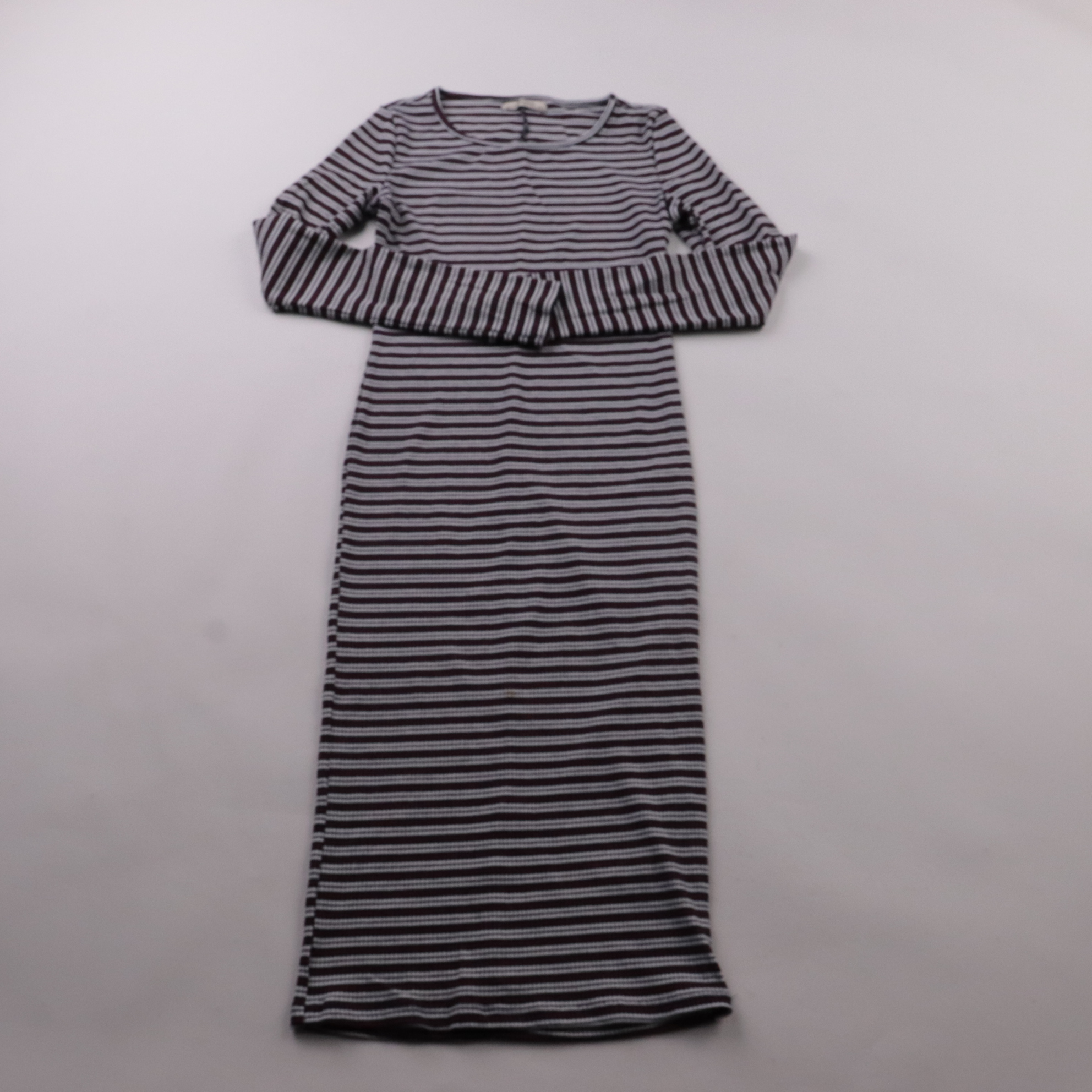 Повседневное платье Bershka в мелкую полоску, длина миди и длинный рукав. Подойдёт для города и работы, легко сочетается с кедами, ботинками и жакетом. Трикотажная ткань тянется и комфортна в носке.