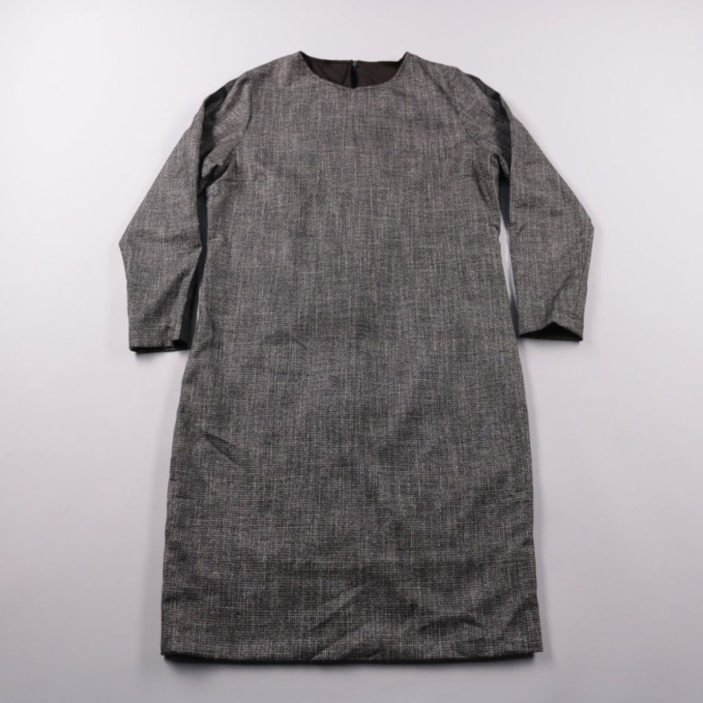 Повседневное платье прямого кроя с длинным рукавом и округлым вырезом, ткань с серым меланжевым эффектом. Подойдёт для офиса и на каждый день, легко сочетается с лоферами или ботинками и базовым жакетом. Практичное преимущество — немаркий цвет и лакони...