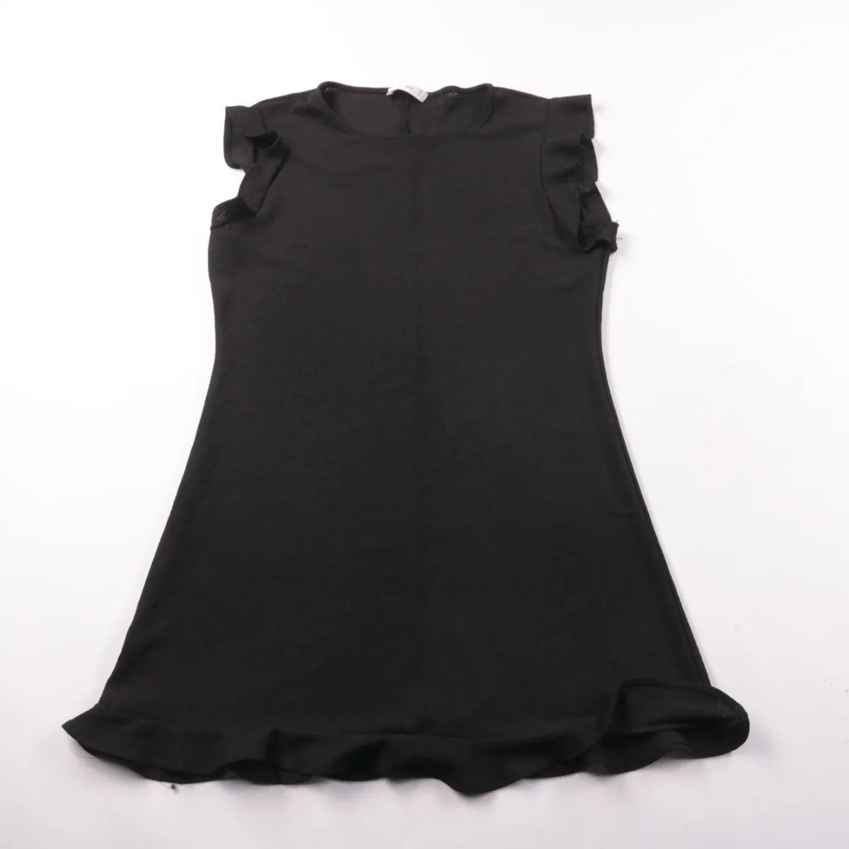 Женское повседневное платье MNG чёрного цвета с короткими рукавами-крылышками и воланом по низу. Подойдёт для повседневных образов и офиса, легко сочетается с жакетом и обувью на каблуке или на плоском ходу. Ткань эластичная, за счёт чего платье комфортно сидит и не сковывает движения.