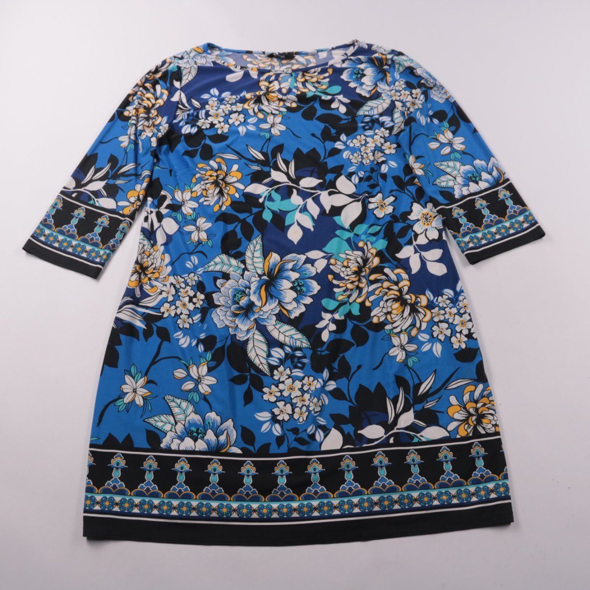Повседневное платье F&F прямого кроя с ярким цветочным принтом и рукавом 3/4. Подойдёт для прогулок и повседневных образов в тёплую погоду. Лёгкая ткань и свободная посадка обеспечивают комфорт в носке.