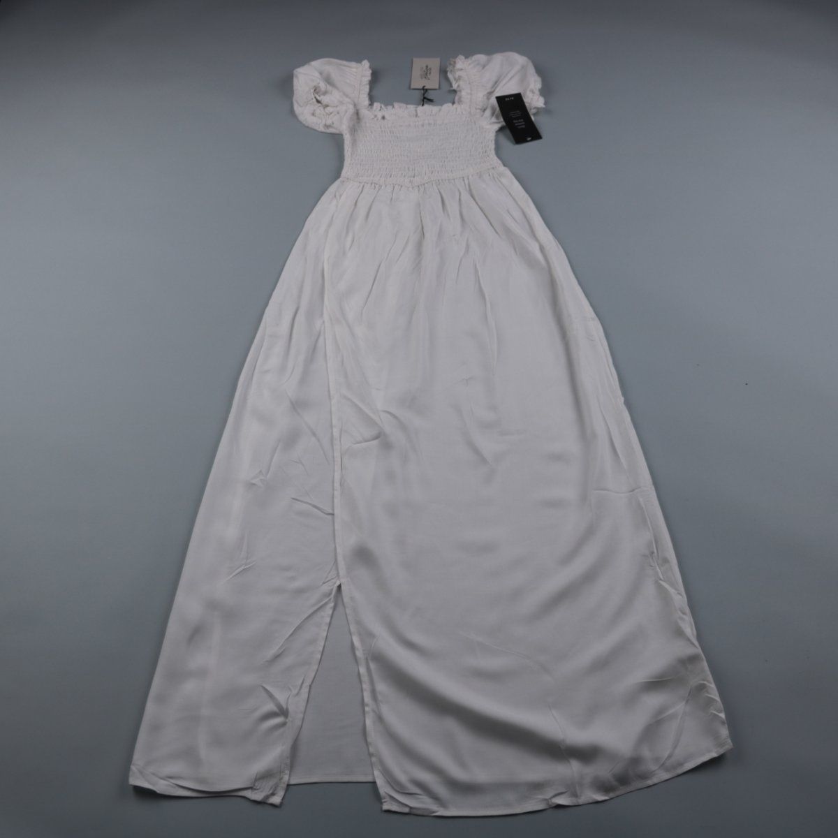 Белое повседневное платье Melissa Bentzen x NA-KD с присборенным эластичным лифом и объёмными рукавами. Подойдёт для лета и отпусков, хорошо смотрится с сандалиями или кедами. Эластичная верхняя часть комфортно садится по фигуре и не сковывает движения.
