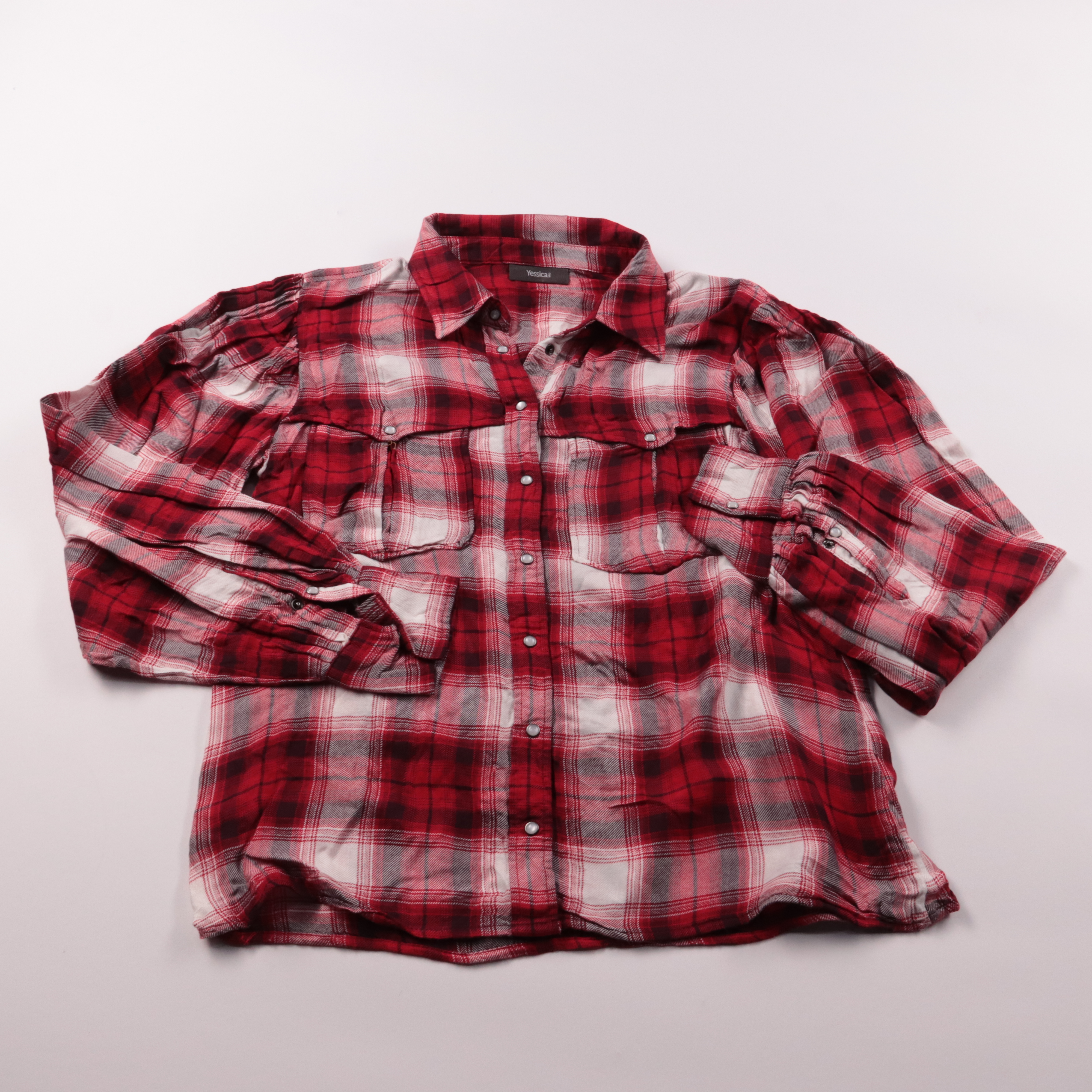 Рубашка Yessica в красно-бело-серую клетку, на кнопках и с нагрудными карманами. Подойдёт для повседневных образов и как второй слой на майку или футболку. Вискоза приятная к телу и хорошо драпируется.