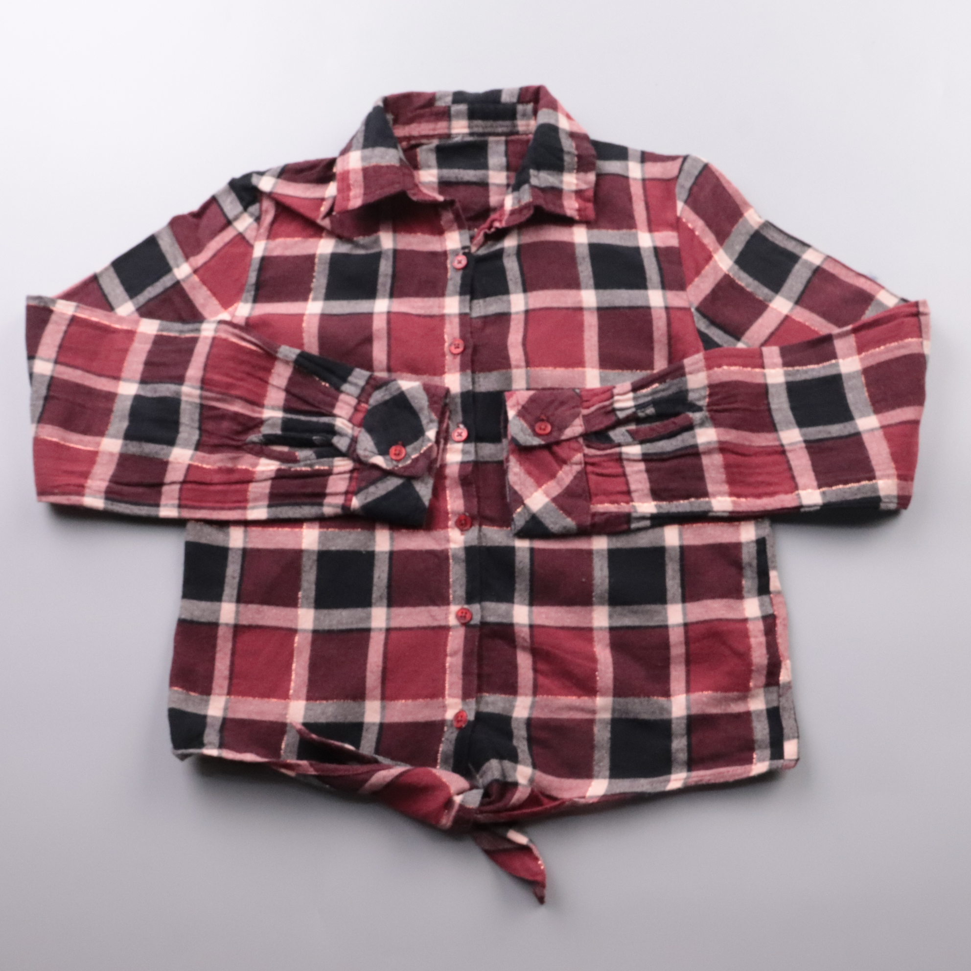 Клетчатая рубашка Zeeman в бордово-черной гамме, с длинным рукавом и завязкой спереди. Подойдет для повседневных образов в демисезон, можно носить как рубашку или как легкую накидку поверх футболки. Хлопковая ткань приятна к телу и хорошо дышит.