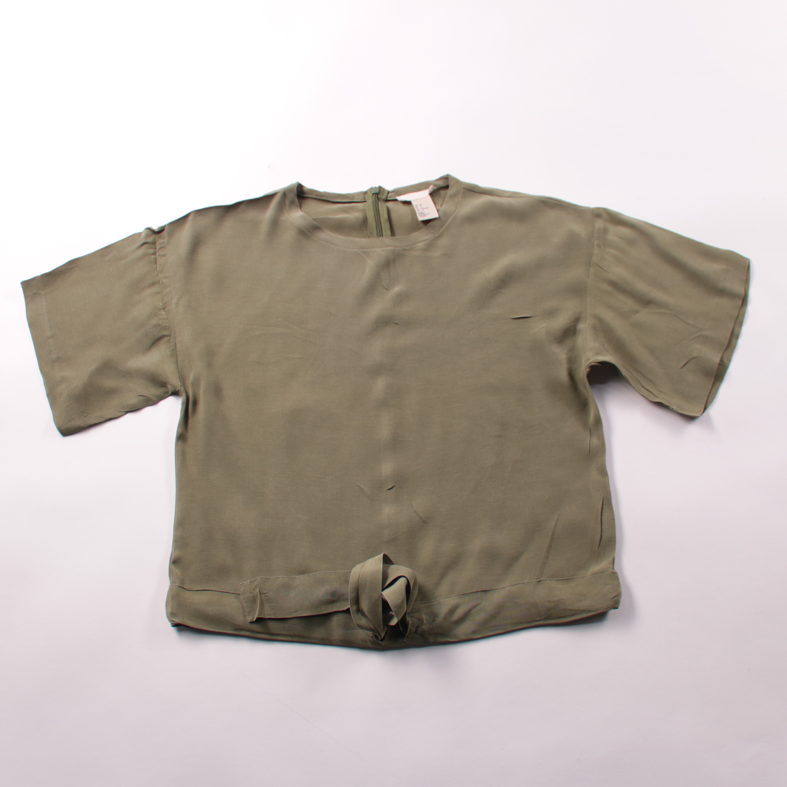 Блузка H&M цвета хаки с коротким рукавом и застёжкой-молнией на спинке. Подойдёт для лета и тёплой погоды, хорошо сочетается с джинсами, шортами или юбкой. Лёгкая ткань комфортна в носке и быстро сохнет.