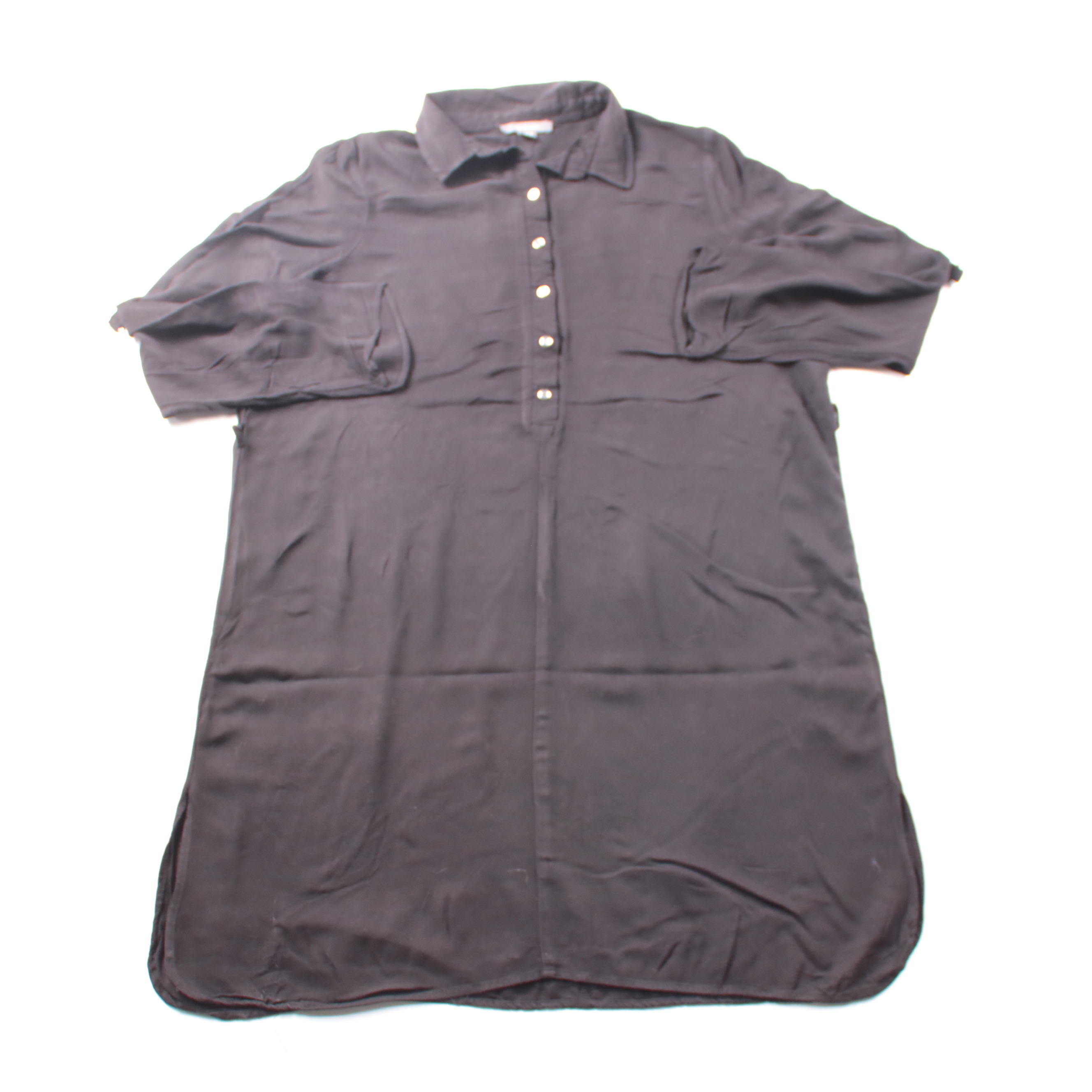 Платье-рубашка Primark из 100% вискозы, чёрного цвета, с воротником и планкой на пуговицах. Подойдёт для повседневных образов и офиса, можно носить как самостоятельное платье или как удлинённую рубашку с поясом. Лёгкая ткань хорошо драпируется и комфор...