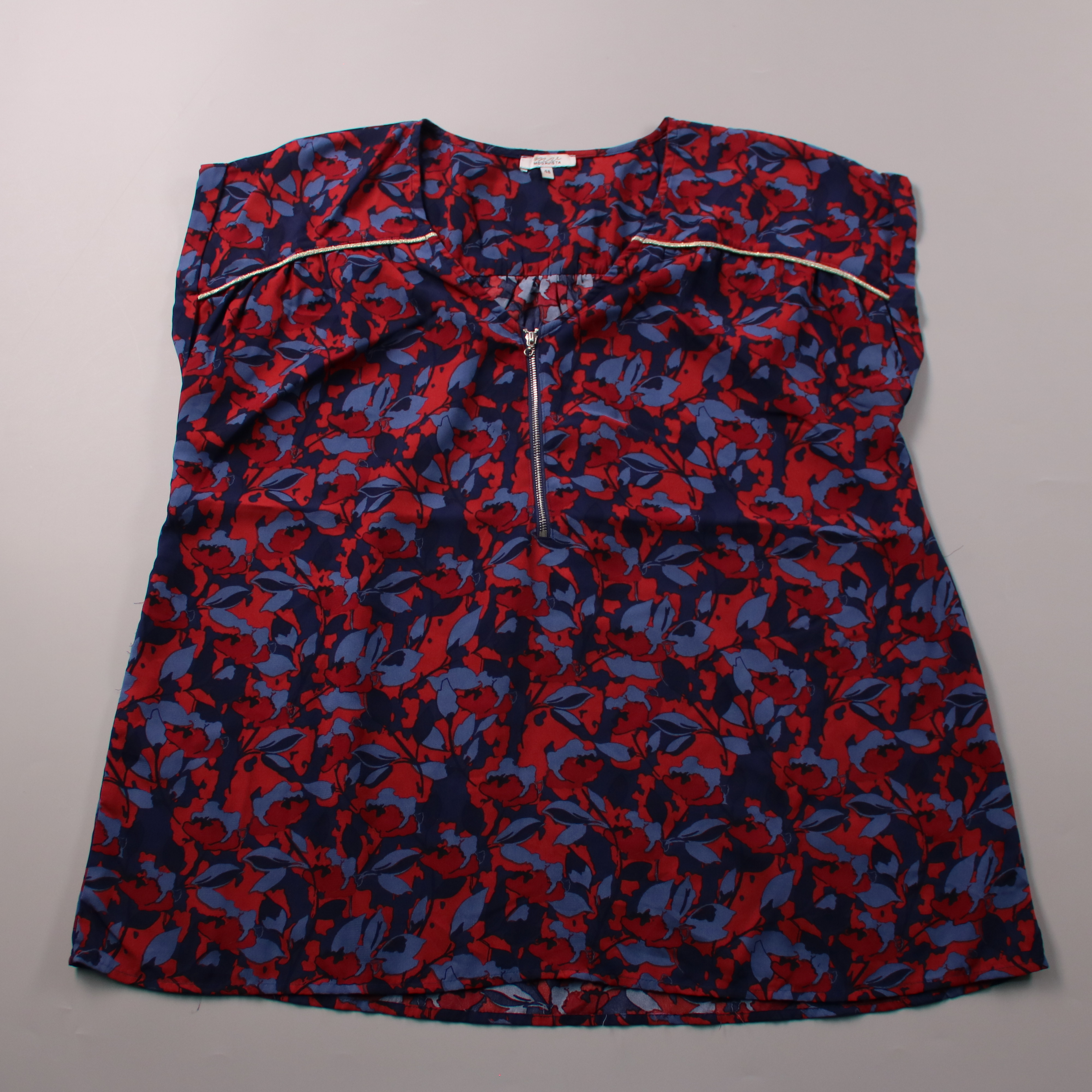 Женская блузка Modavista с ярким цветочным принтом и коротким рукавом, спереди застёжка-молния. Подойдёт для повседневных образов и офиса в тёплое время года. Лёгкая ткань из полиэстера почти не мнётся и быстро сохнет.