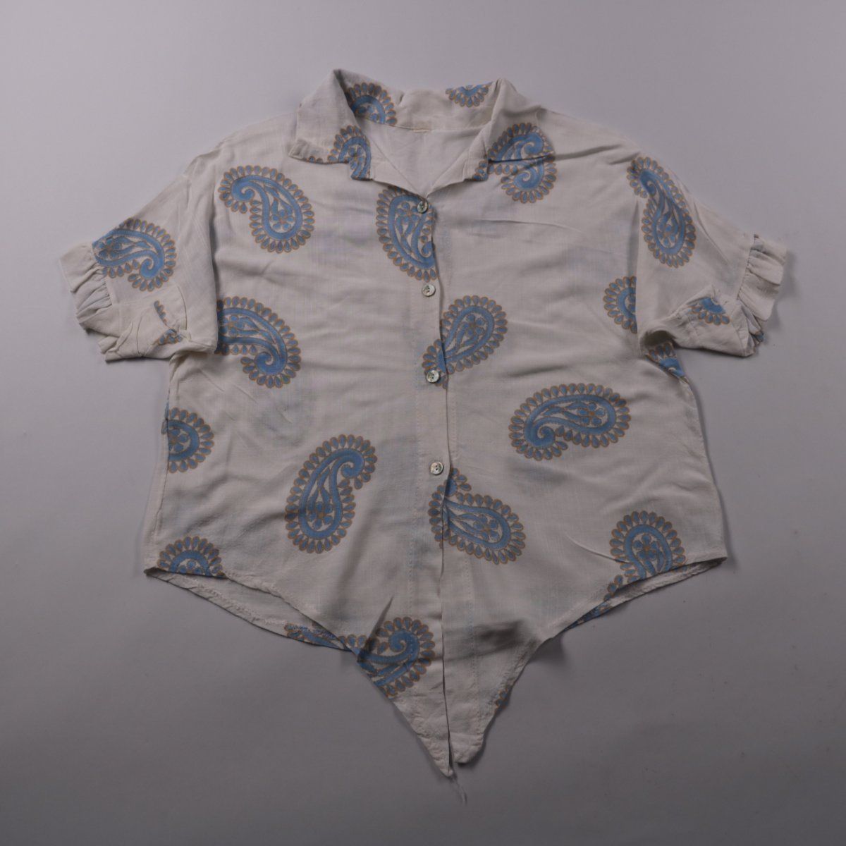 Блузка Iacopo из 100% вискозы, светлая с голубым принтом «пейсли» и коротким рукавом. Подойдёт для лета и отпуска, хорошо сочетается с шортами и лёгкими брюками. Вискоза приятна к телу и хорошо дышит в жару.