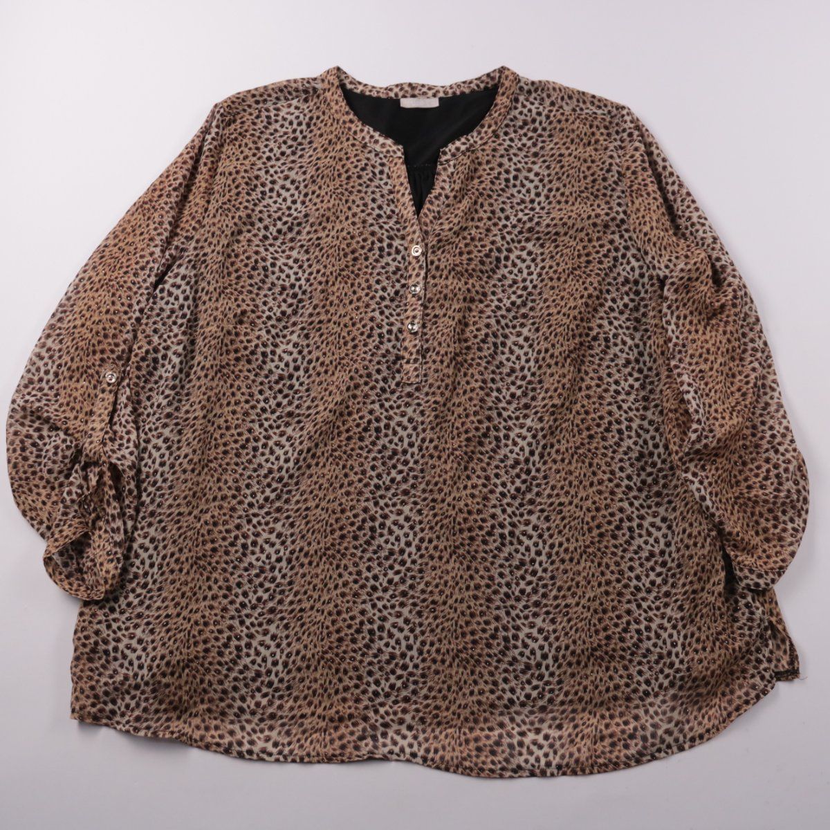 Женская блузка Jamina с леопардовым принтом и V‑вырезом на пуговицах. Подойдёт для повседневных образов и офиса, хорошо сочетается с джинсами и однотонными брюками. Лёгкая ткань комфортна в носке и почти не мнётся.