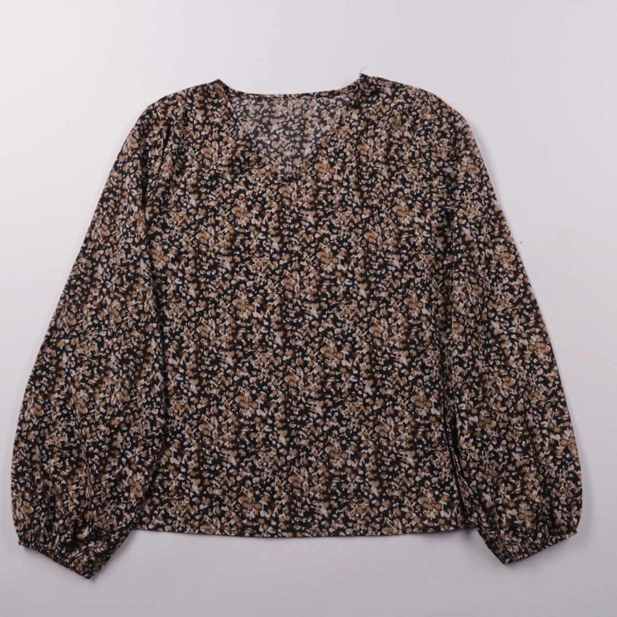 Женская блузка Shein с мелким цветочным принтом и V-образным вырезом. Подойдёт для офиса и на каждый день, хорошо сочетается с джинсами и классическими брюками. Лёгкий полиэстер почти не мнётся и быстро сохнет.