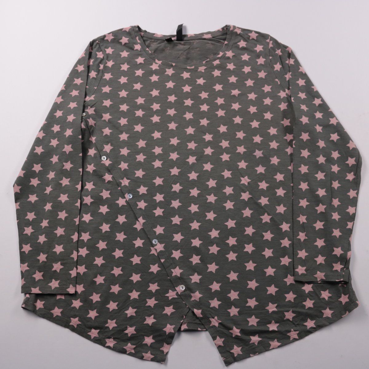 Женская блузка Rainbow из мягкого трикотажа с принтом в звёзды в серо-розовой гамме. Подойдёт для повседневных образов и как лёгкий слой в прохладную погоду благодаря длинному рукаву. Тонкая ткань комфортно носится и не стесняет движений.
