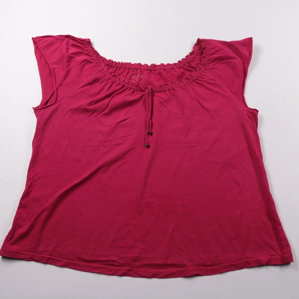 Женская блузка Laura Torelli насыщенного розово-бордового цвета с эластичной сборкой по горловине и завязками. Подойдёт для лета и тёплой погоды, хорошо сочетается с джинсами, шортами или юбкой. Лёгкая и удобная, не стесняет движения за счёт свободного кроя.