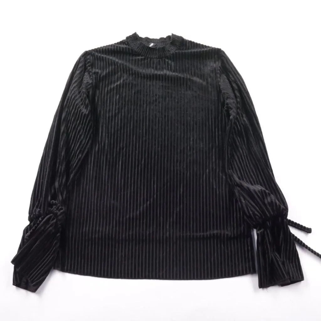 Женская блузка Eksept из ребристого бархатистого материала с высоким воротником и длинными рукавами. Подойдёт для повседневных образов и на выход, хорошо сочетается с брюками и юбками. Ткань тянется за счёт эластана и комфортно садится по фигуре.