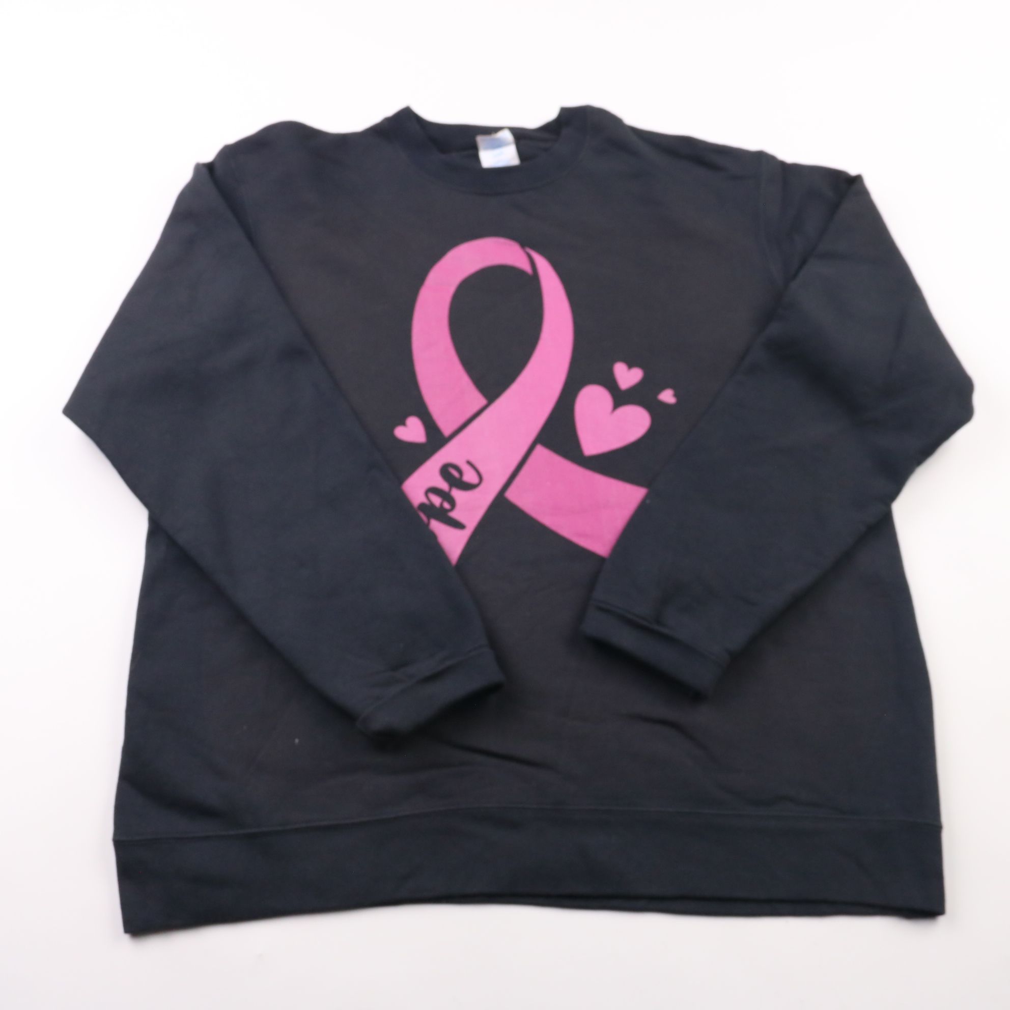 Чёрный свитшот с ярким розовым принтом (лента и сердечки) подойдёт для повседневных образов и прогулок. Удобная посадка и мягкий трикотаж делают его комфортным в прохладную погоду. Практичен в носке и легко сочетается с джинсами и спортивными брюками.
