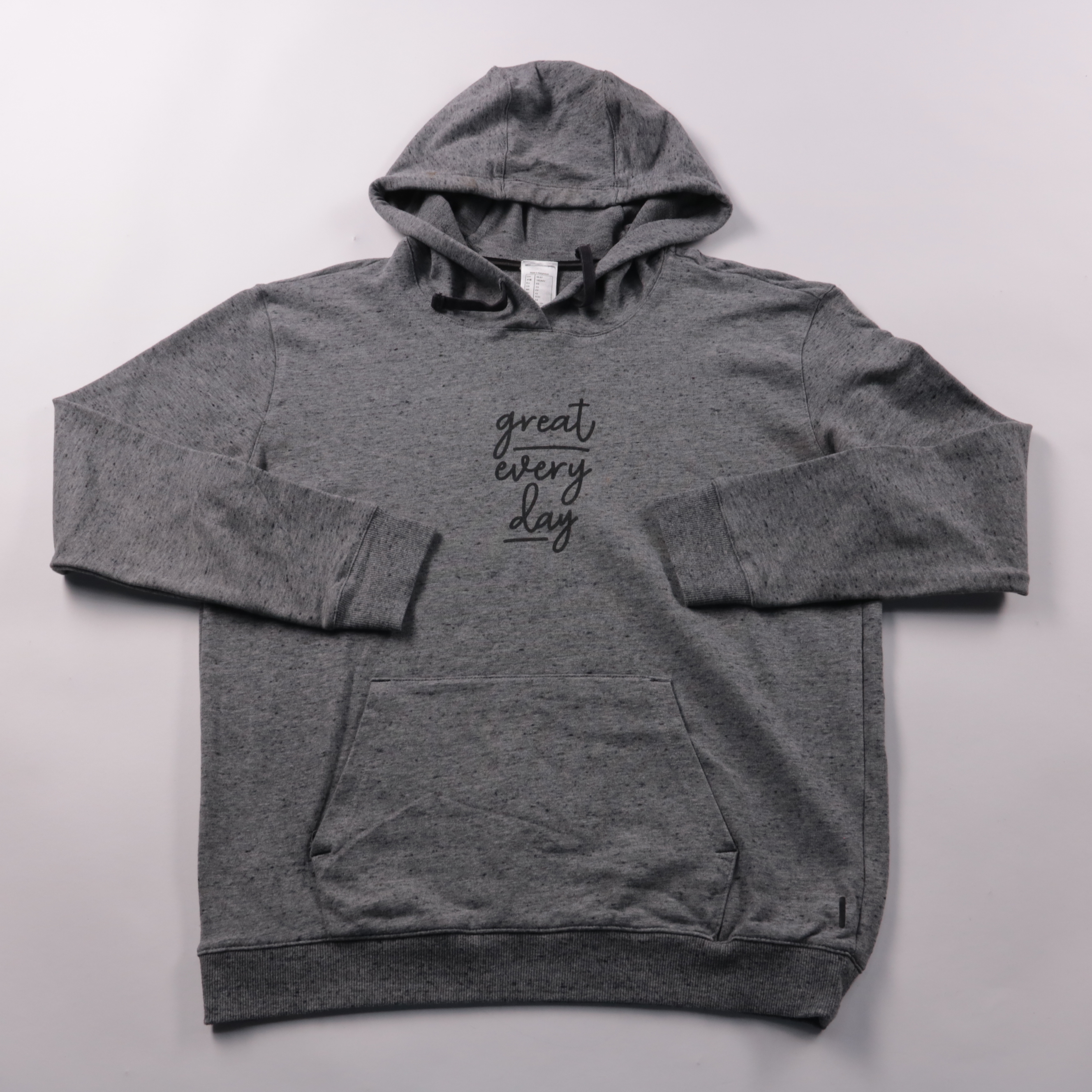 Женская толстовка Decathlon серого меланжа с капюшоном, карманом-кенгуру и надписью на груди. Подойдёт для прогулок, спорта и повседневной носки в прохладную погоду. Мягкий трикотаж и эластан в составе дают комфорт и сохраняют форму.