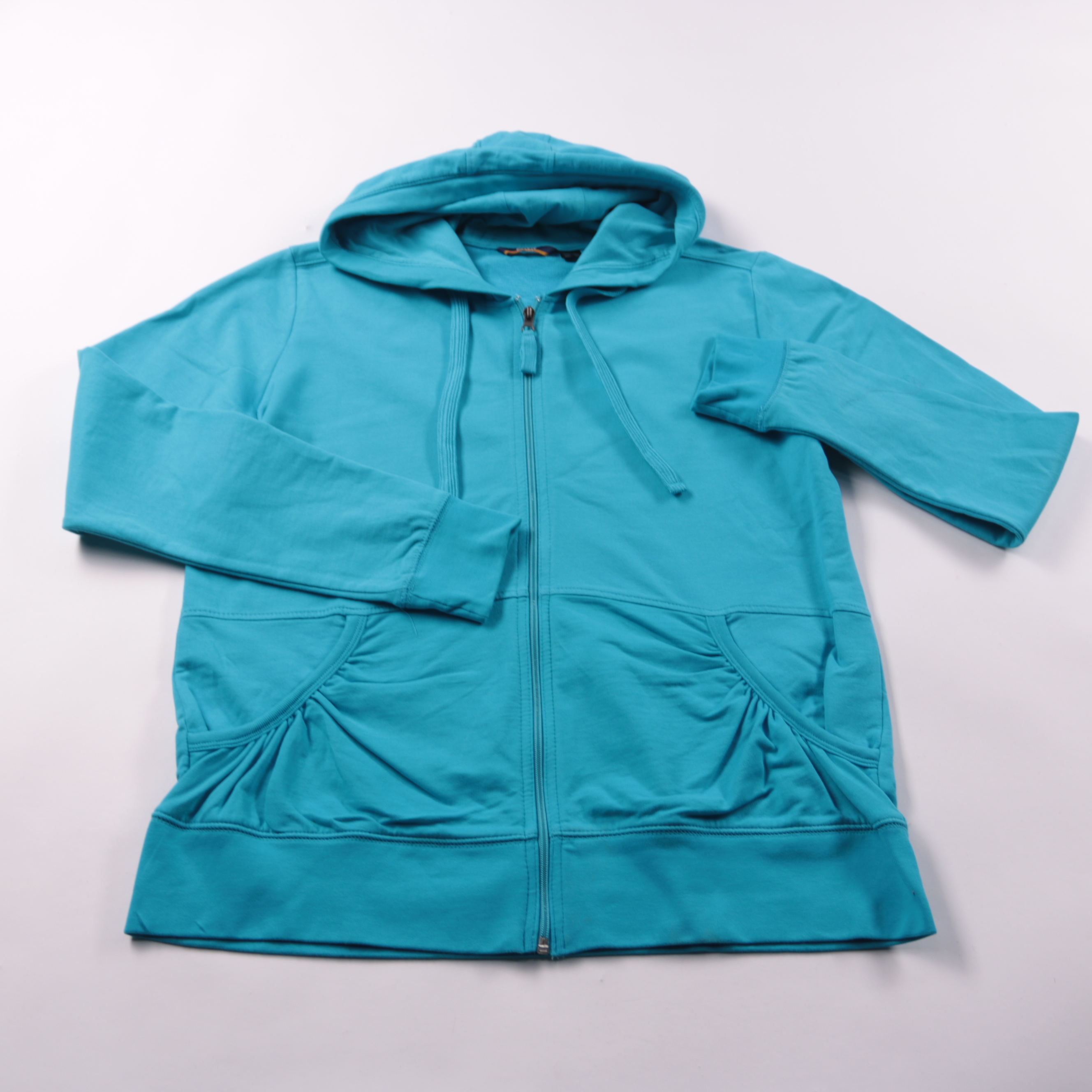 Толстовка Crivit на молнии с капюшоном и удобными карманами, цвет яркий бирюзовый. Подойдёт для прогулок, поездок и повседневных образов в прохладную погоду. Практичный плюс — хлопковая ткань с добавлением полиэстера легче в уходе и держит форму.