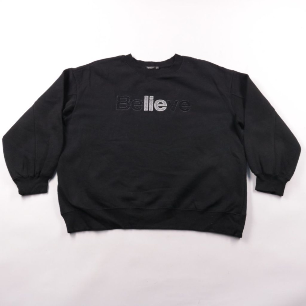 Женский свитшот Bershka чёрного цвета с лаконичной надписью «Believe» спереди. Подойдёт для повседневных образов и прогулок в прохладную погоду, удобно сочетается с джинсами и спортивными брюками. Мягкий хлопковый материал с добавлением эластана хорошо...