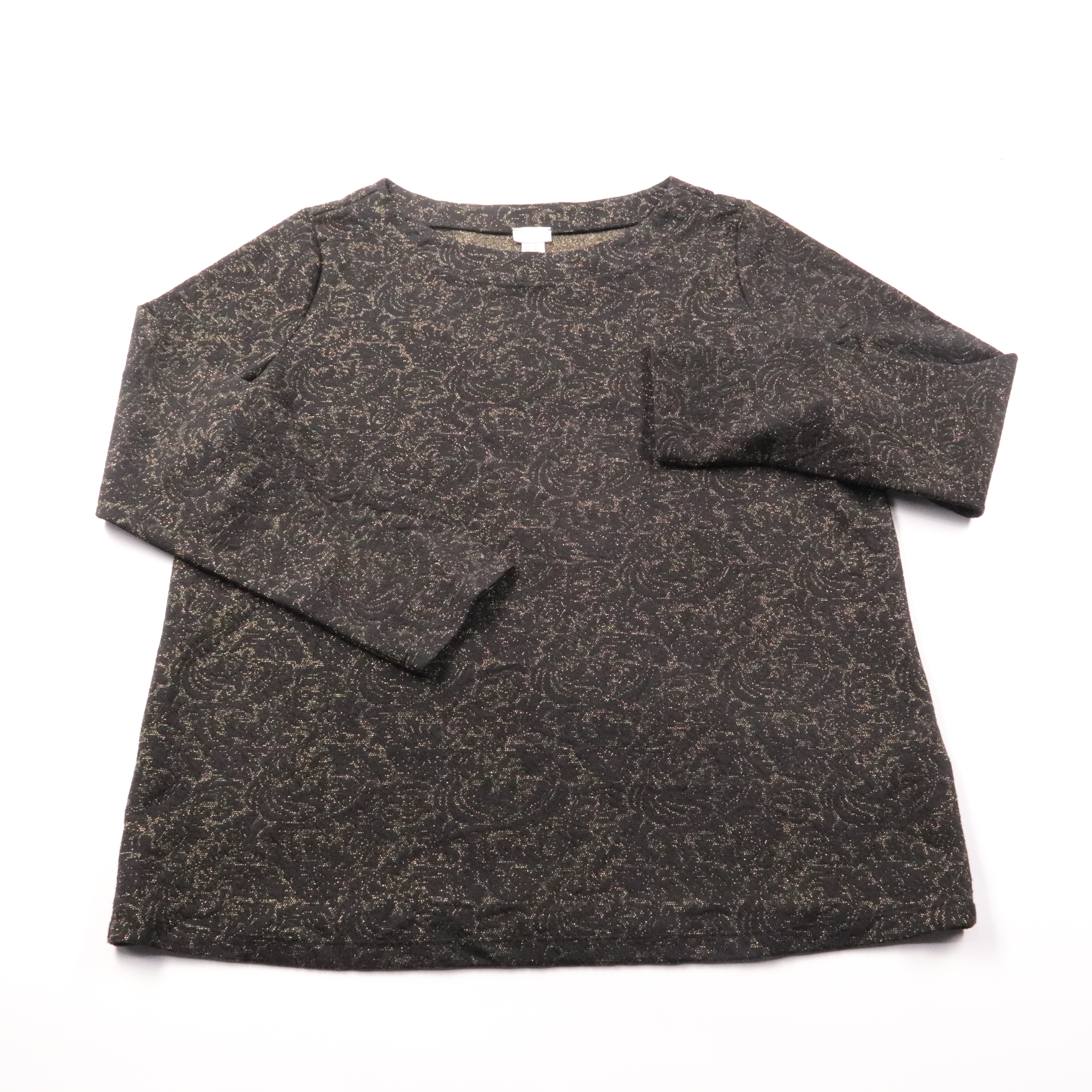 Лонгслив Mona из мягкой вискозной ткани с добавлением металлизированной нити, чёрный с золотистым узором. Подойдёт для повседневных образов и для выхода, когда хочется лёгкого блеска без лишней нарядности. Практичный плюс — хорошо сочетается с однотонн...