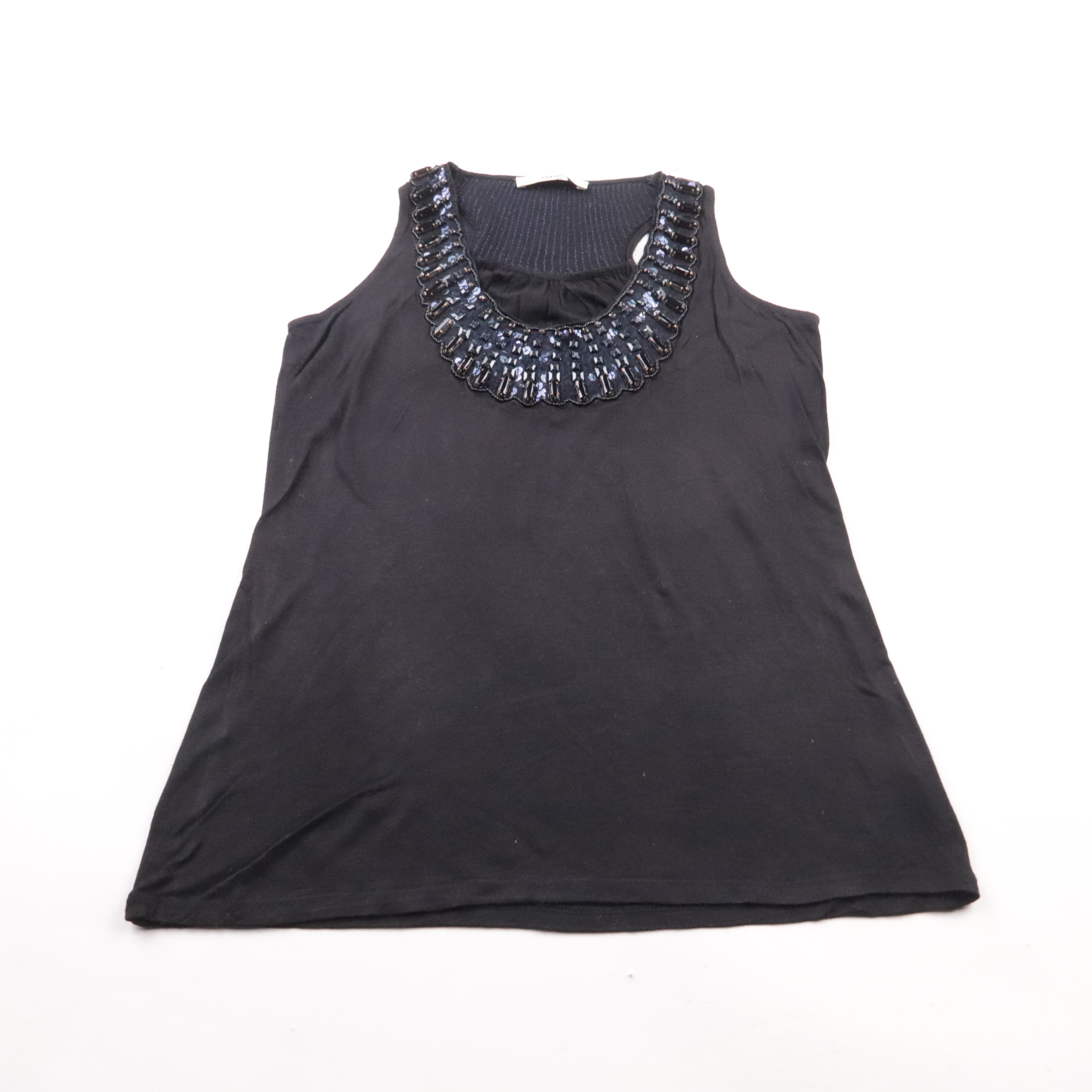 Чёрный топ Oasis с широкими бретелями и декоративной отделкой бусинами по вырезу. Подойдёт для вечера, праздника или как акцент в повседневном образе с жакетом. Вискоза приятно ощущается на коже и хорошо драпируется.