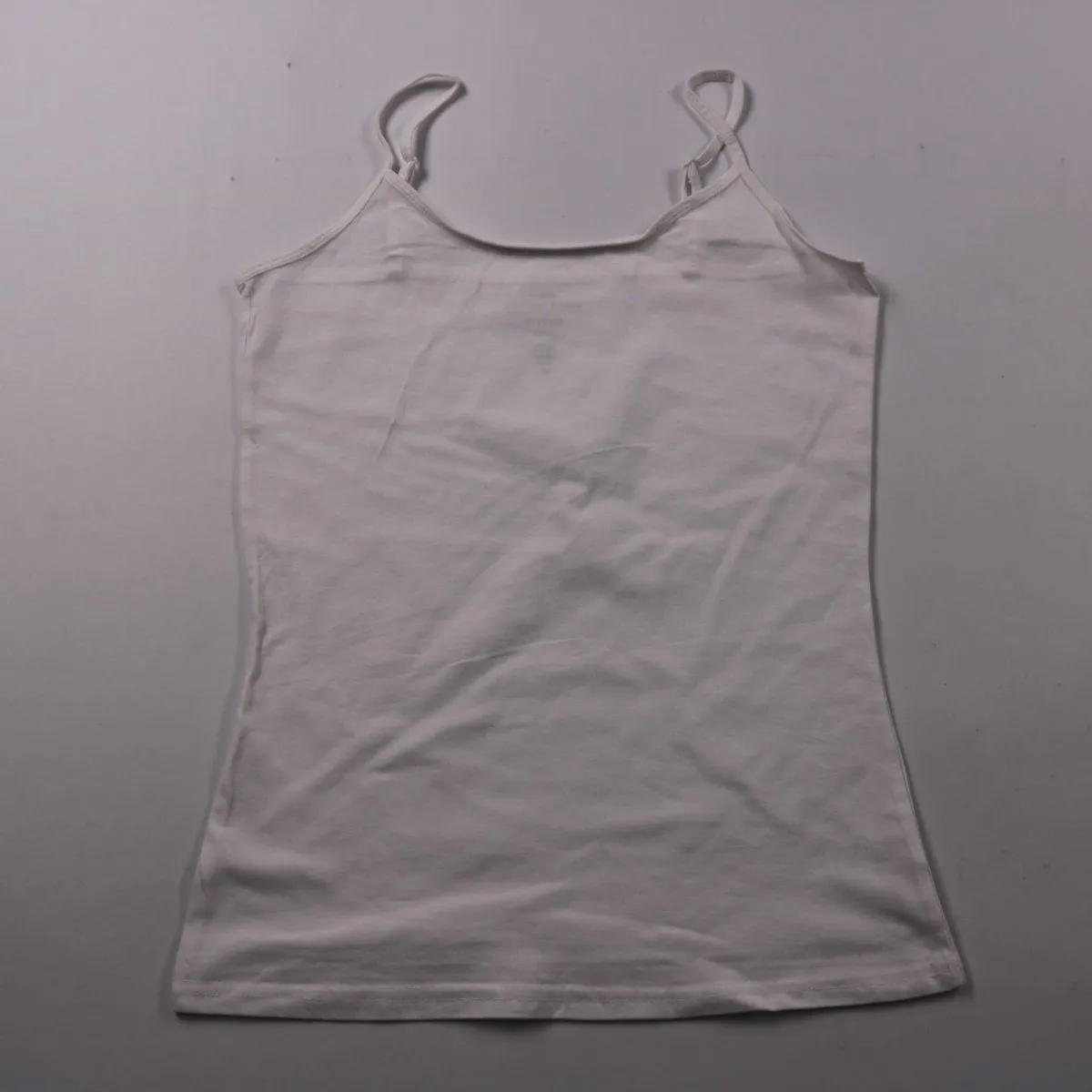Белая облегающая майка-камисоль George Everyday Basics на тонких бретелях. Подойдёт как базовый слой под рубашку/джемпер или для дома и сна. Ткань с эластаном немного тянется и комфортно садится по фигуре.