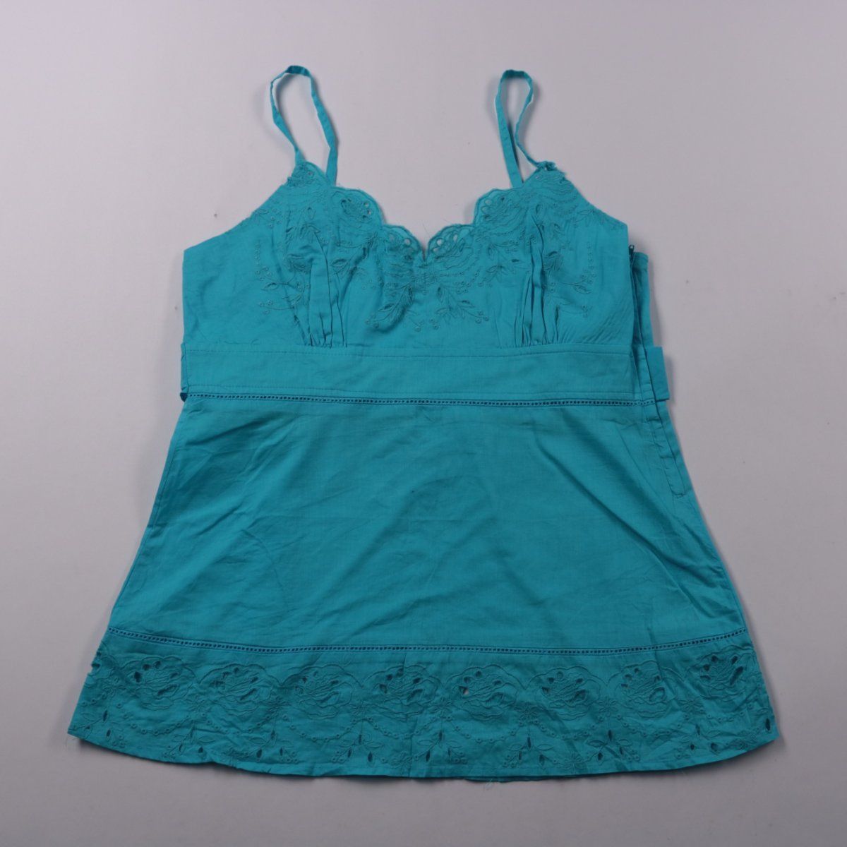 Топ New Look на тонких бретелях, выполнен из хлопка и украшен вышивкой по верху и по низу. Подойдёт для лета и отпуска, легко сочетается с шортами, юбками и джинсами. Натуральная ткань хорошо дышит и комфортна в жару.