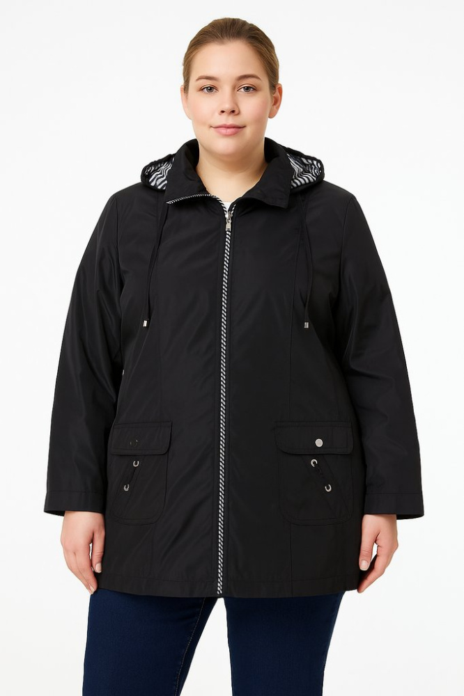 Демисезонная куртка Saturne с капюшоном и удобной застёжкой на молнию. Подойдёт для повседневных прогулок и поездок в прохладную погоду. Практичный плотный полиэстер легко очищается и хорошо защищает от ветра.