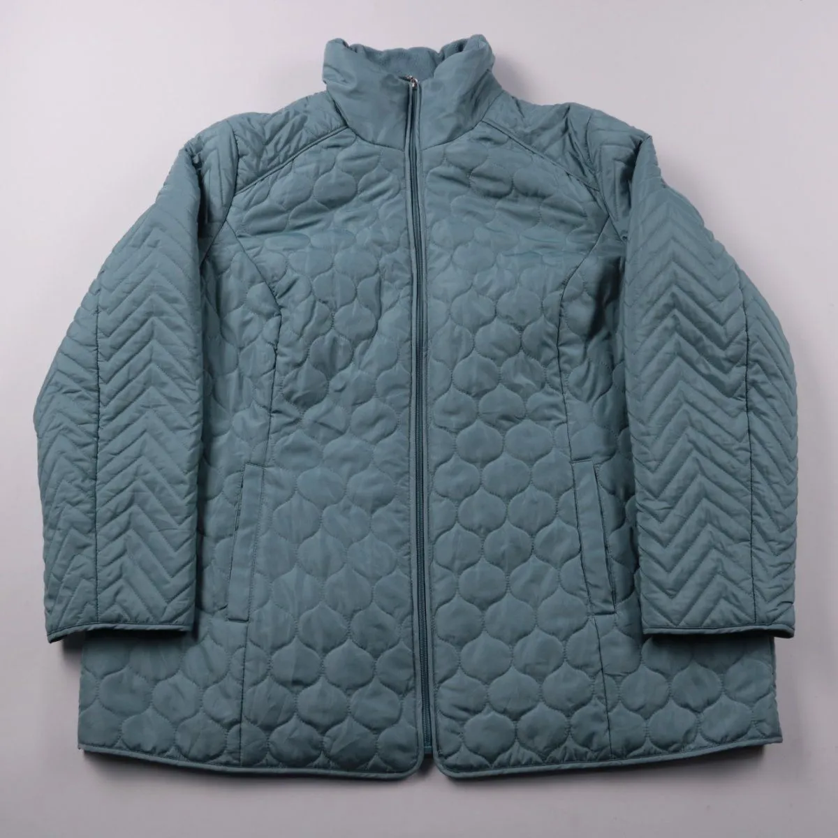 Стёганая куртка Paola! в спокойном серо-голубом оттенке, на молнии и с высоким воротником-стойкой. Подойдёт для прохладной весны и осени, удобно носить в городе и на прогулках. Практичный плюс — лёгкая и простая в уходе ткань, есть карманы.