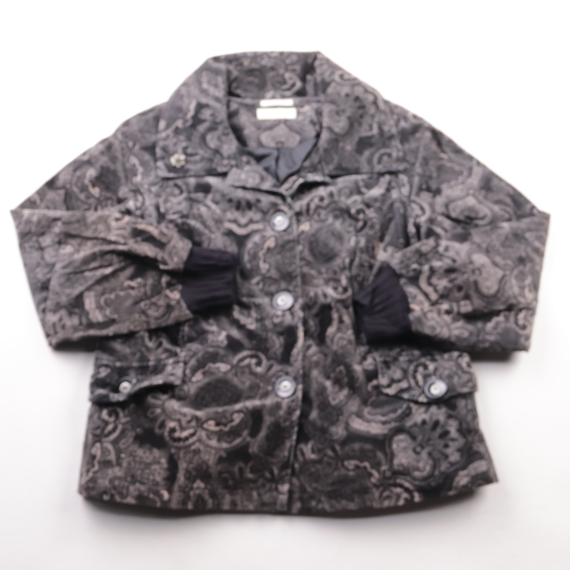 Женская куртка Jones New York из хлопкового стрейча с жаккардовым узором в серо-чёрной гамме. Подойдёт для демисезона и прохладных дней, хорошо смотрится в городских образах с джинсами или брюками. Материал немного тянется, поэтому куртка комфортно сад...