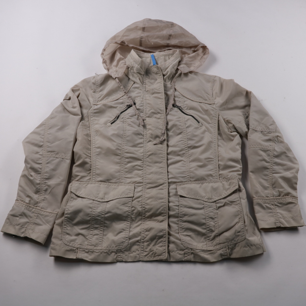 Лёгкая женская куртка Street One бежевого цвета с капюшоном и накладными карманами. Подойдёт для прогулок и повседневной носки в демисезон, удобно садится за счёт прямого кроя. Практична тем, что материал верха из нейлона и легко очищается.